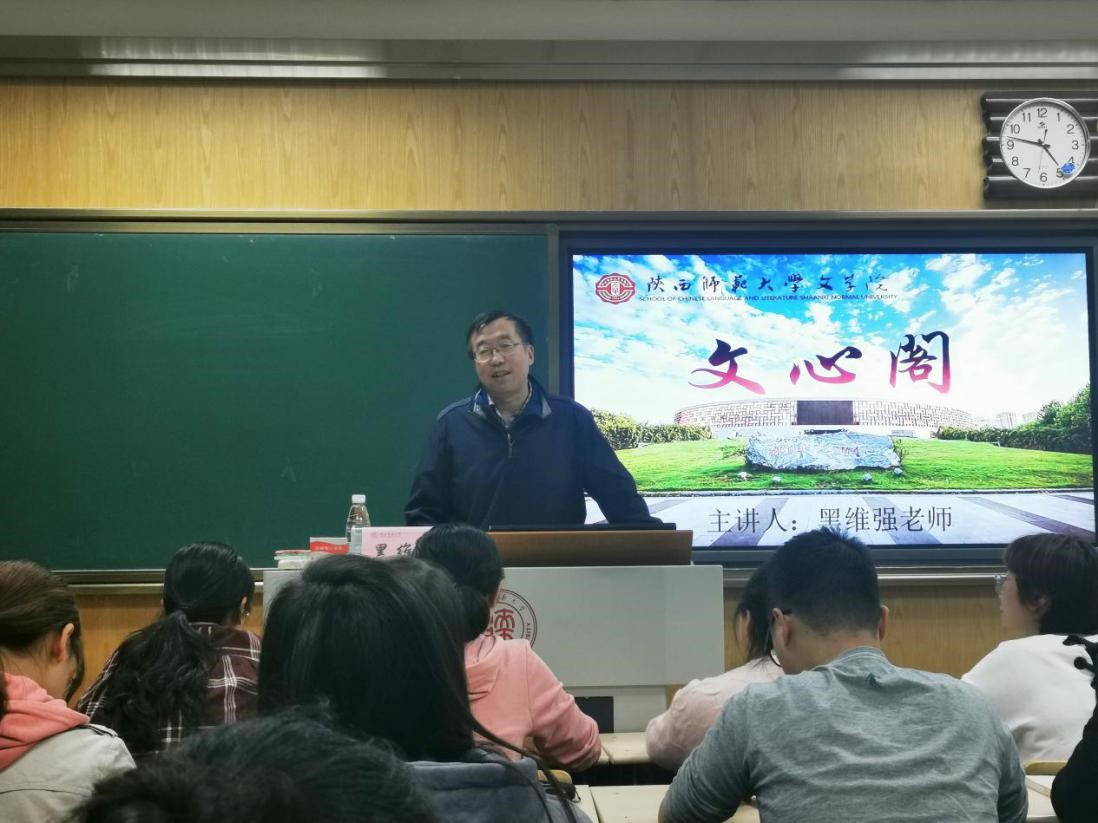 10月10日16:30,本学期第1期(总第233期)文心阁交流活动在文渊楼3113教室举行。bv伟德教授黑维强老师应邀参加本次活动。黑维强教授现为bv伟德博士生导师,以近代汉语,训诂学,方言学,敦煌学为主要研究方向。在此次文心阁活动中,黑维强老师就专业研究领域展开介绍,分享学习研究经历,并为同学们答疑解惑。