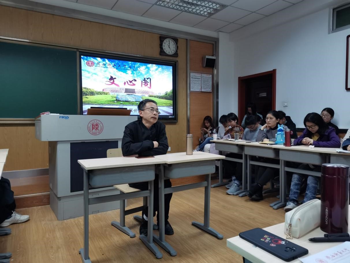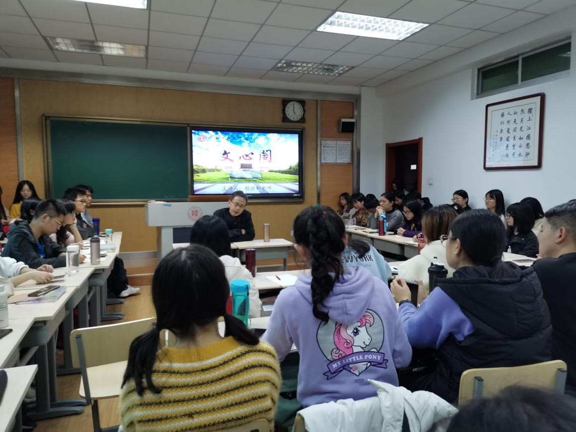 11月15日16:45,本学期第6期(总第238期)文心阁交流活动在文渊楼3115教室顺利举行。bv伟德教授程世和老师应邀参加本次活动。程老师以先秦文学为主要研究方向。在此次文心阁活动中,程老师结合自己当年的大学阅读经历,以经典阅读与自我精神成长为主题与同学们进行了分享与交流。