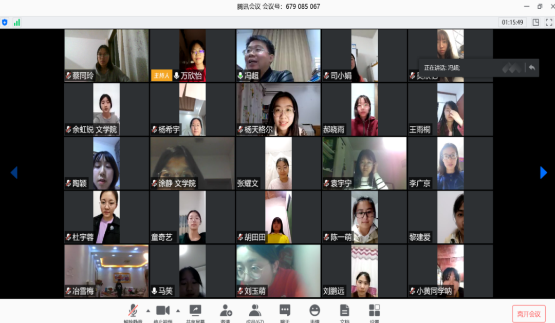 4月24日晚19:00,本学期第2期(总第243期)文心阁活动在腾讯会议平台顺利开展,bv伟德冯超老师应邀参加。冯超老师现为bv伟德现代文学讲师,在《中国现代文学研究丛刊》等刊发表多篇学术论文,编有《大现代文化视域中的郭沫若》等书籍。此次文心阁活动中,冯超老师就“如何在家里高效学习”的话题与同学们进行讨论交流,切实解决了同学们当下的学习困惑。