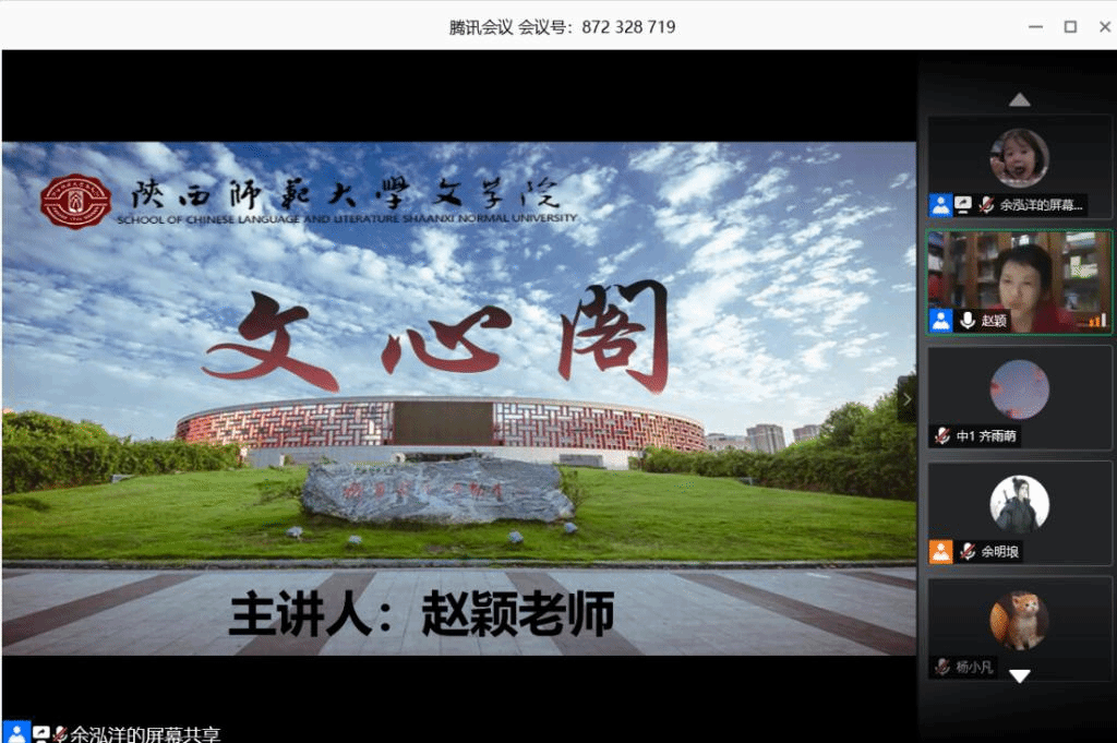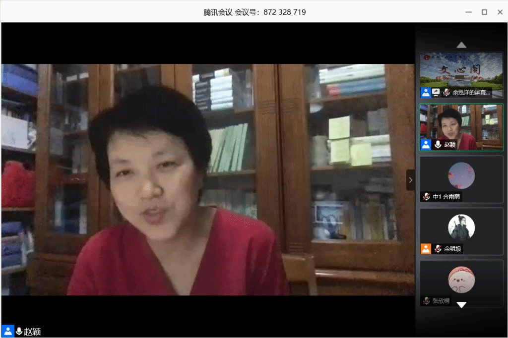 5月28日晚19:00,本学期第5期(总第246期)文心阁活动在腾讯会议平台顺利开展,bv伟德赵颖老师应邀参加。赵颖老师现为bv伟德副教授、硕士生导师、秘书学系系主任,主要从事比较文学、东南亚文学与文化以及秘书学等方向的教学与研究。在本次文心阁活动中,赵颖老师紧密结合自身学习研究历程与同学们的实际情况,就同学们极为关注的论文写作以及时间管理问题展开交流,并为同学们一一耐心答疑解惑。