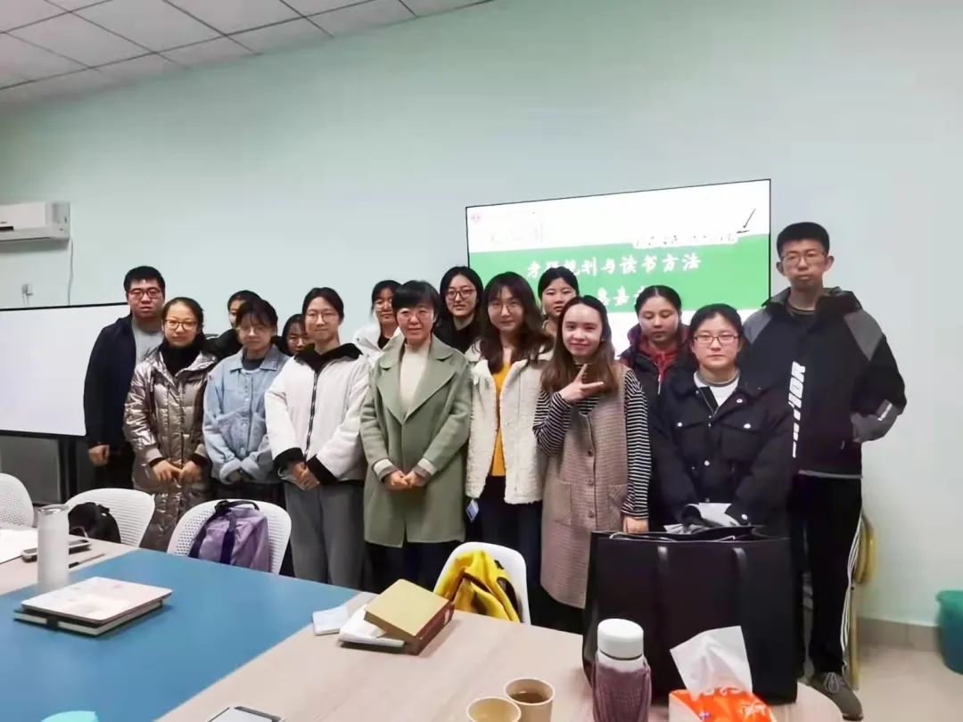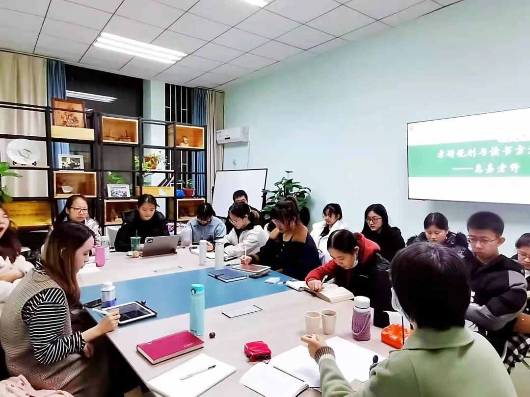 随后,惠老师进一步引申“研究能力”,分享了读书方法,强调了阅读经典的重要性,提出了“一本书主义”的读书方法:“就自己感兴趣的领域,精读一本理论作品,打好根基,之后再结合作品阅读,会有更大的收获与提升。”同时也介绍了“三轮复习法”及“三分之一笔记留白法”。最后,惠老师激励大家:“挺住意味着一切”,保持良好心态应对考研。