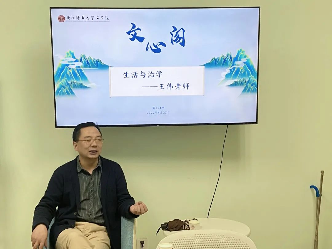 4月27日晚,本学期第4期(总第294期)文心阁师生面对面交流活动顺利举行,中国古代文学教研室的王伟老师应邀参加。在本次活动中,王老师围绕“生活与治学”这一主题,与同学们进行分享,并对同学们提出的问题进行了解答。
