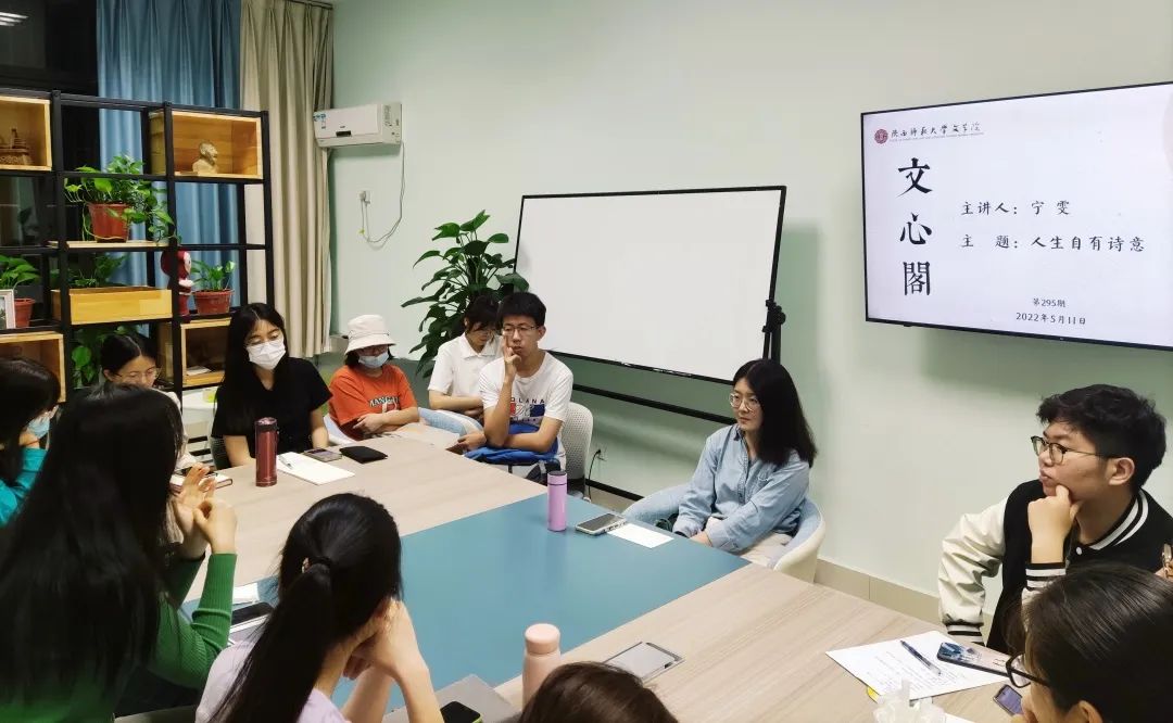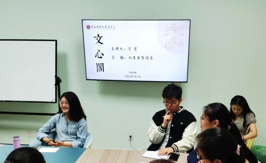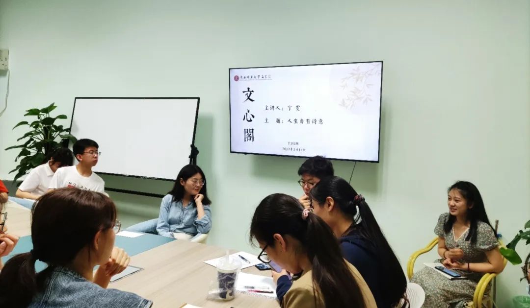5月11日晚,本学期第5期(总第295期)文心阁师生面对面交流活动顺利举行,bv伟德中国古代文学教研室的宁雯老师应邀参加。本次活动中,宁老师围绕“人生自有诗意”这一主题,与同学们亲切交流。