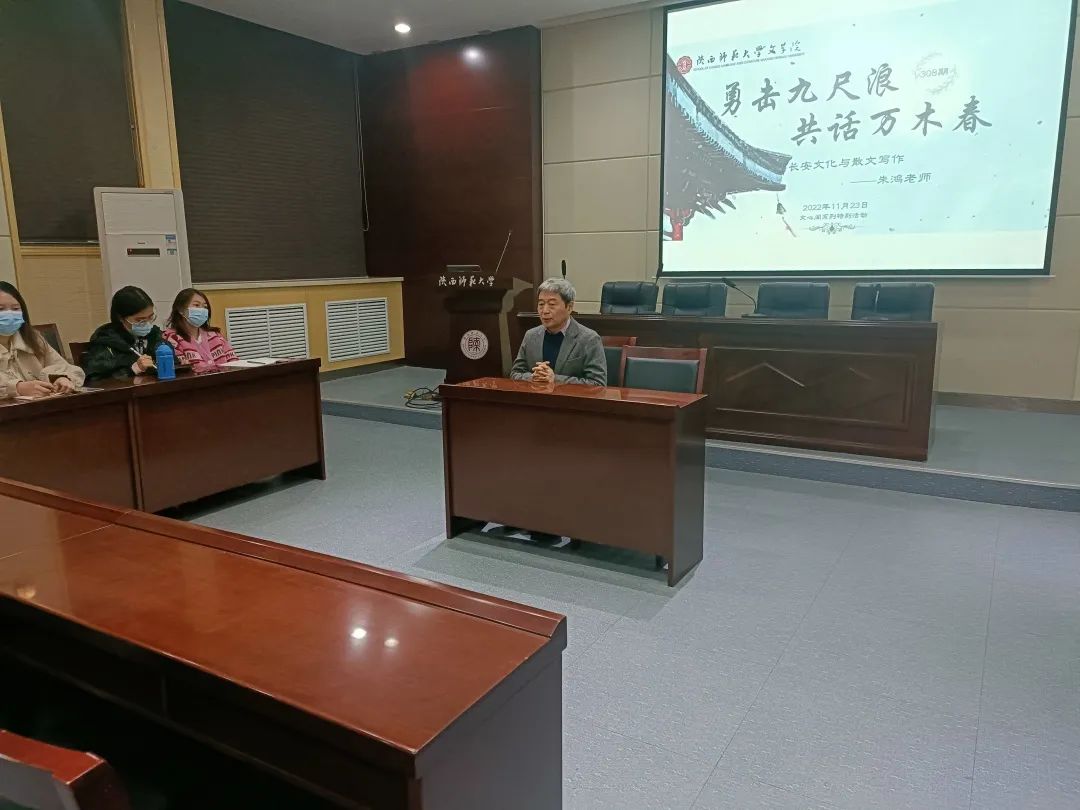 11月23日晚,本学期第6期(总第308期)文心阁师生面对面交流活动在文汇楼A段111报告厅顺利举行,bv伟德教授、写作教研室的朱鸿老师应邀参加。本次活动中,朱老师围绕“长安文化与散文写作”这一主题,与同学们展开了探讨,整场交流活动轻松而有趣,同学们受益匪浅。