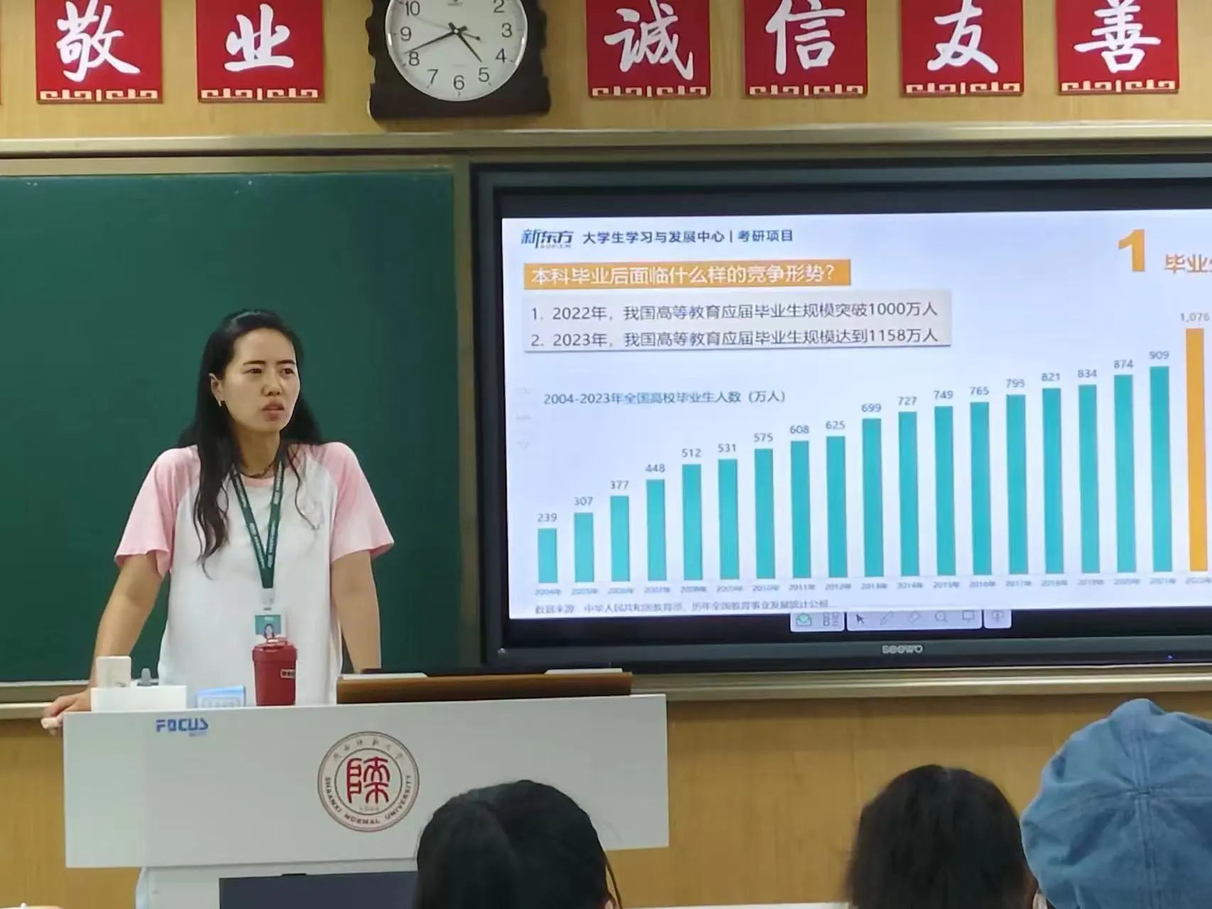 9月12日,本学期第1期(总第354期)文心阁活动在长安校区文渊楼3210室成功举办。新东方科技教育集团的李楠老师以“熠熠青春,研梦起航——考研选择与备考指南”为主题,和同学们进行交流分享,为同学们提供科学的考研指南。