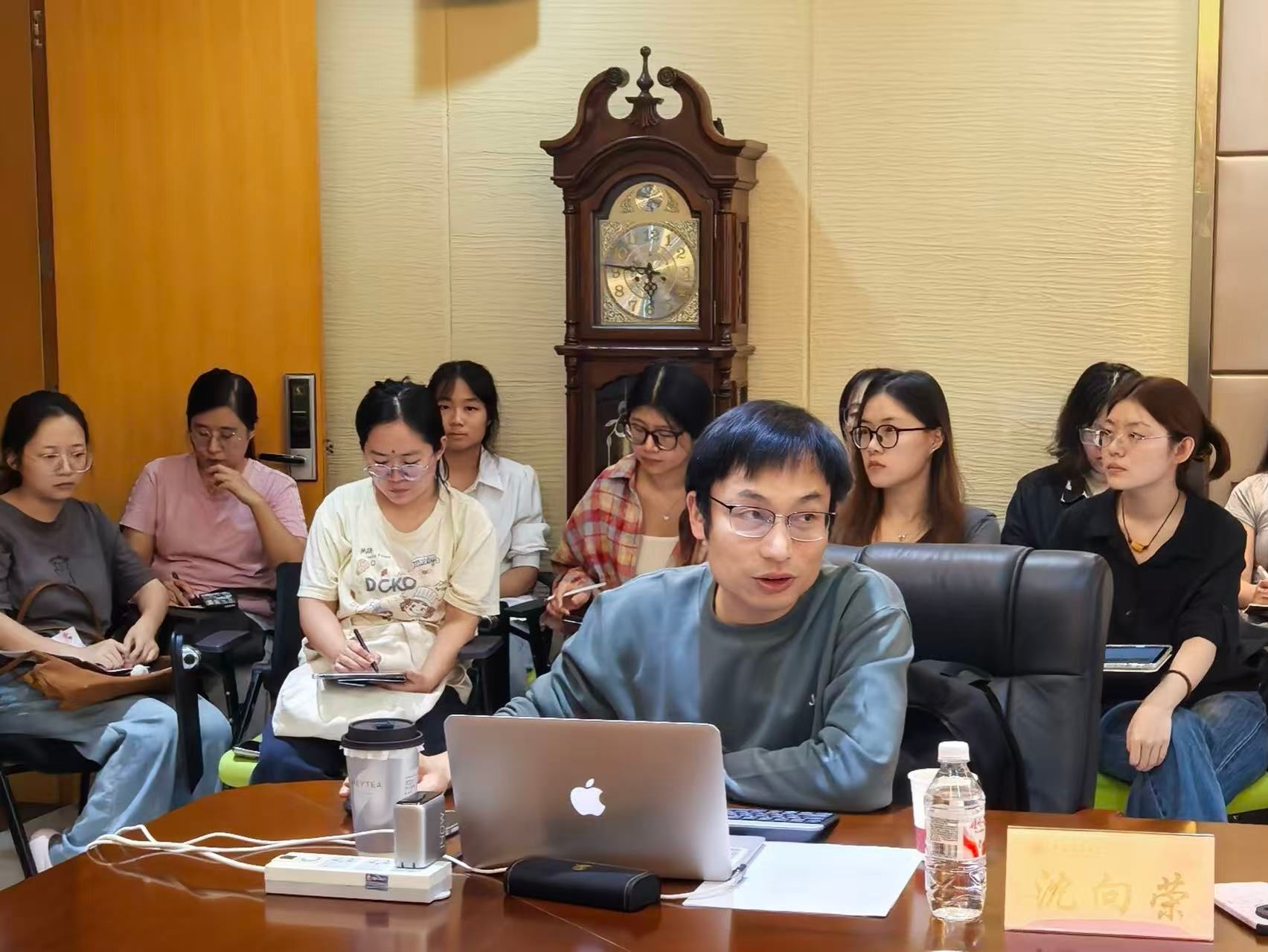 17日下午举行的实验室研讨会由柯西钢教授主持。杨鹏教授汇报了智能传感研发方向的最新成果,展示了团队在抗干扰语音识别传感器方面的突破性进展;杨剑峰教授分享了基于脑科学的语言学习机制研究成果。与会专家学者围绕语音大数据建设、智能技术研发等议题展开深入讨论。