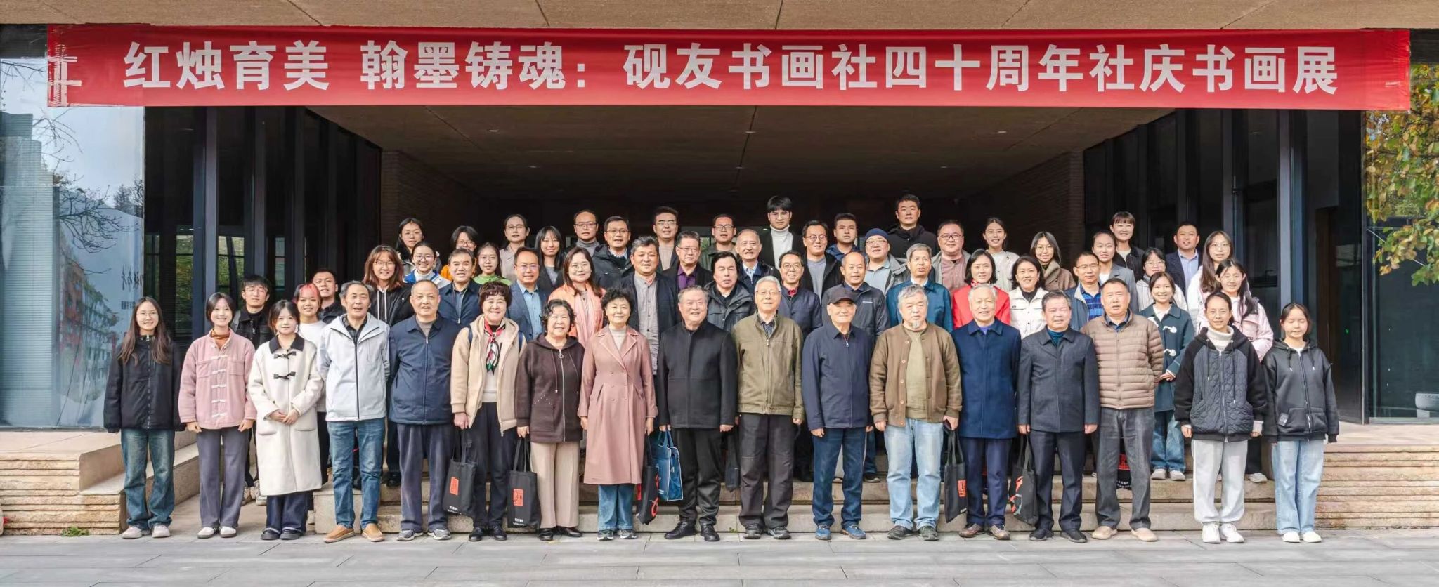 论坛结束后,全体参会嘉宾移步至bv伟德中国官方网站教育博物馆参观社庆书画展。展览汇集了砚友书画社社员与指导老师的优秀作品,风格多样、笔触生动,展现了砚友书画社四十年来的艺术积淀与创新成果。