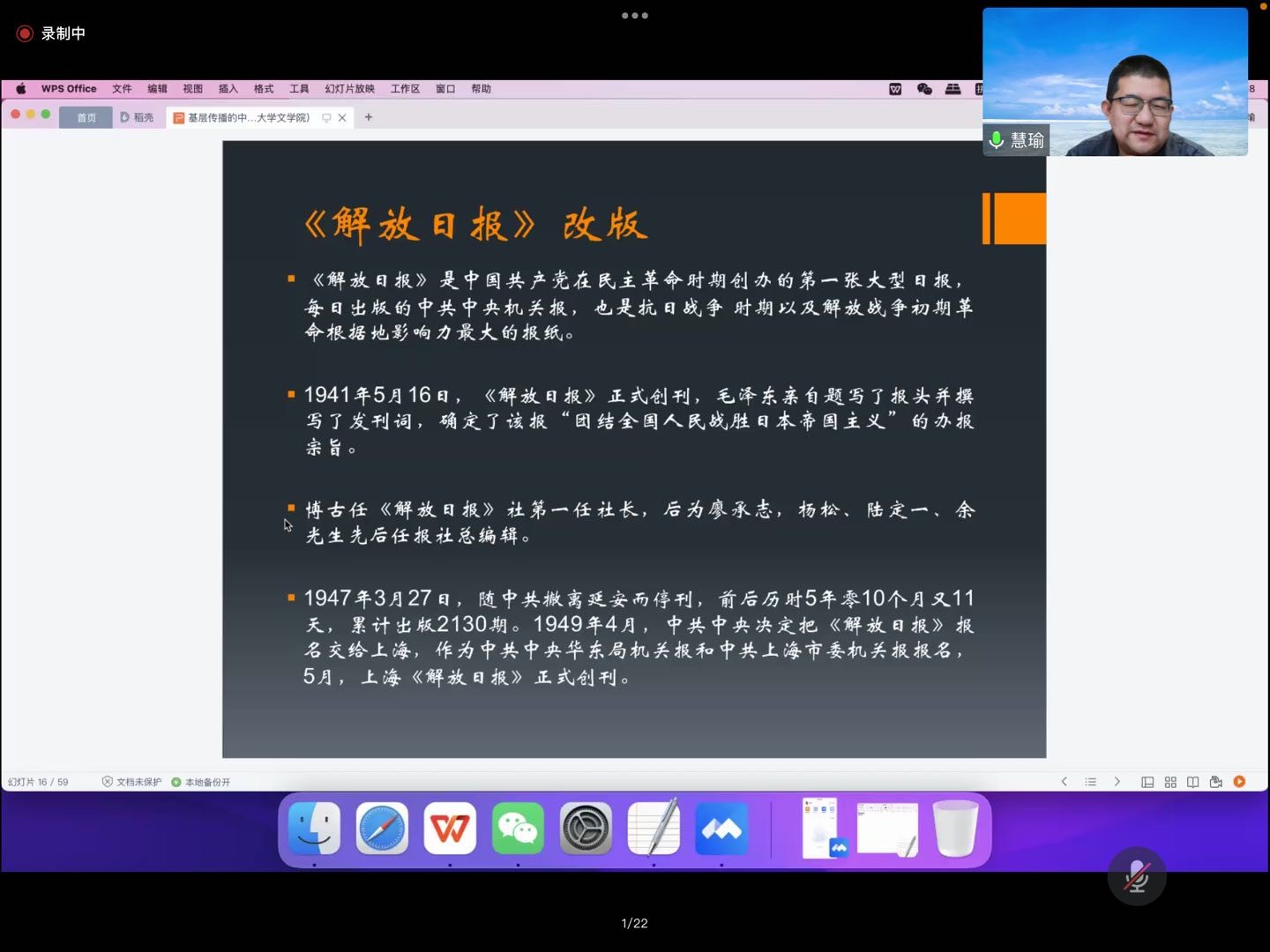 在介绍完核心概念之后,张老师重点从宣传角度理解延安“讲话”和《解放日报》改版。他指出,延安“讲话”与《解放日报》分别属于文学领域与新闻和传播学领域,但不能仅从各自的学科角度出发,应该从宣传视角来理解文学,二者是密切联系的。接下来他谈到了整风运动中“延安文艺讲话”和《解放日报》改版发展的历史过程,以及两者该如何放在一起研究。张老师解释道,这两场整风运动的意义主要从以下两个角度来体现:一是对于大众传播媒介、现代媒介的改造,二是对知识分子、文艺工作者的改造,双重改造对基层传播产生了重要的影响。