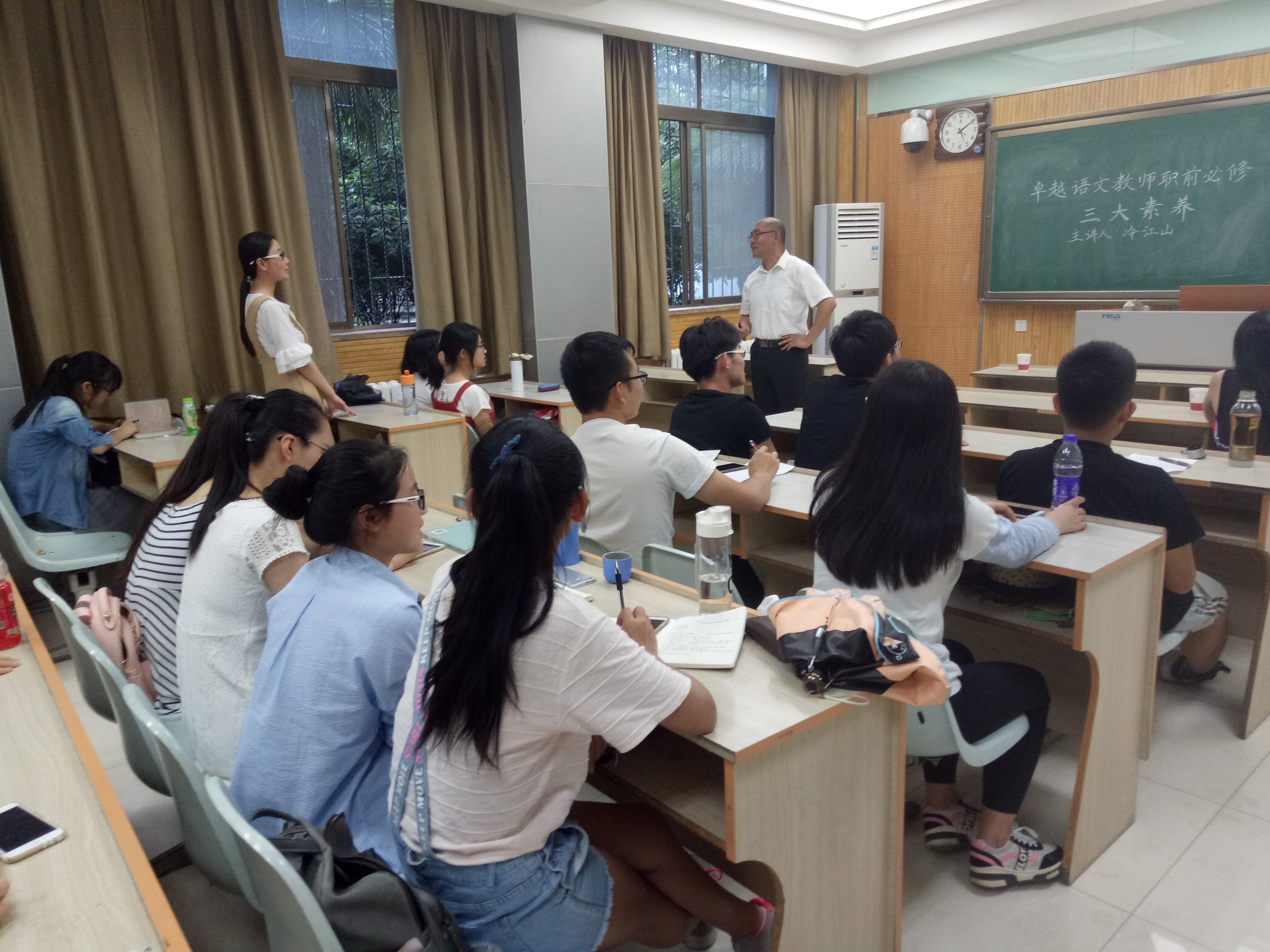 (通讯员:吕嘉慧)5月12日下午4:30,公司2016级汉语言文学卓越班在雁塔校区8102教室听取了由贵州师范大学bv伟德冷江山副教授所作主题为《卓越语文教师职前必修的三大素养》的讲座。2016级汉语言文学卓越班全体同学参加了这次讲座,讲座由卓越班项目主任王晓娟老师主持。