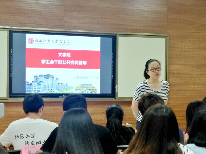 答辩开始前,团委书记辛田老师简要介绍此次会议的目的与流程。随后,答辩正式开始,本次答辩采用自我陈述、现场问答相结合的方式进行。每位2016级同学都充分展现风采,介绍竞聘优势及对部门工作的设想。各位老师根据每位同学的陈述提出了一些针对性问题。会后将公示各部门部长名单。