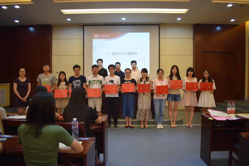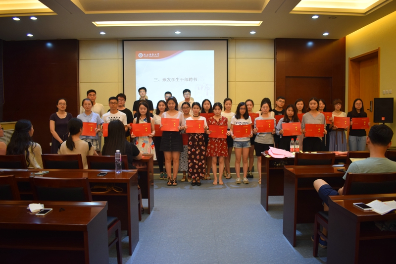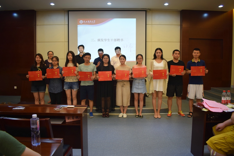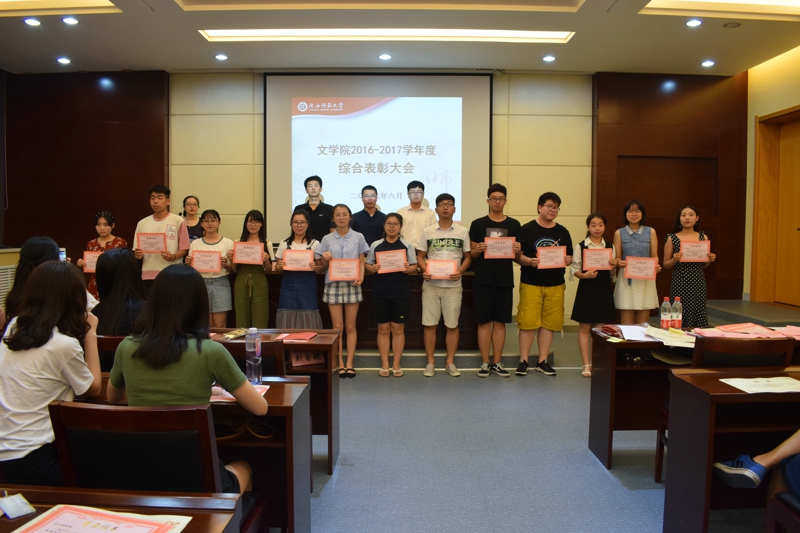 大会开始,全体起立,奏唱共青团团歌。会议分为两个部分,首先,辛田老师宣读2016-2017学年度员工会、研究生会、昭文工作室、宿舍管理委员会员工干部及评优名单,与会老师为同学们办法聘书及获奖证书。之后,程海峰老师宣读《bv伟德关于表彰2017年“戏·韵”话剧节优秀剧组及演职人员的决定》,秦亚坤老师宣读了《bv伟德关于表彰2016年迎新晚会优秀演职人员的决定》,侯立老师宣读了《bv伟德关于表彰优秀宿舍的决定》,与会老师为在2016-2017学年度,在“戏·韵”话剧节、迎新晚会及宿舍评比中表现突出的集体和个人颁奖。