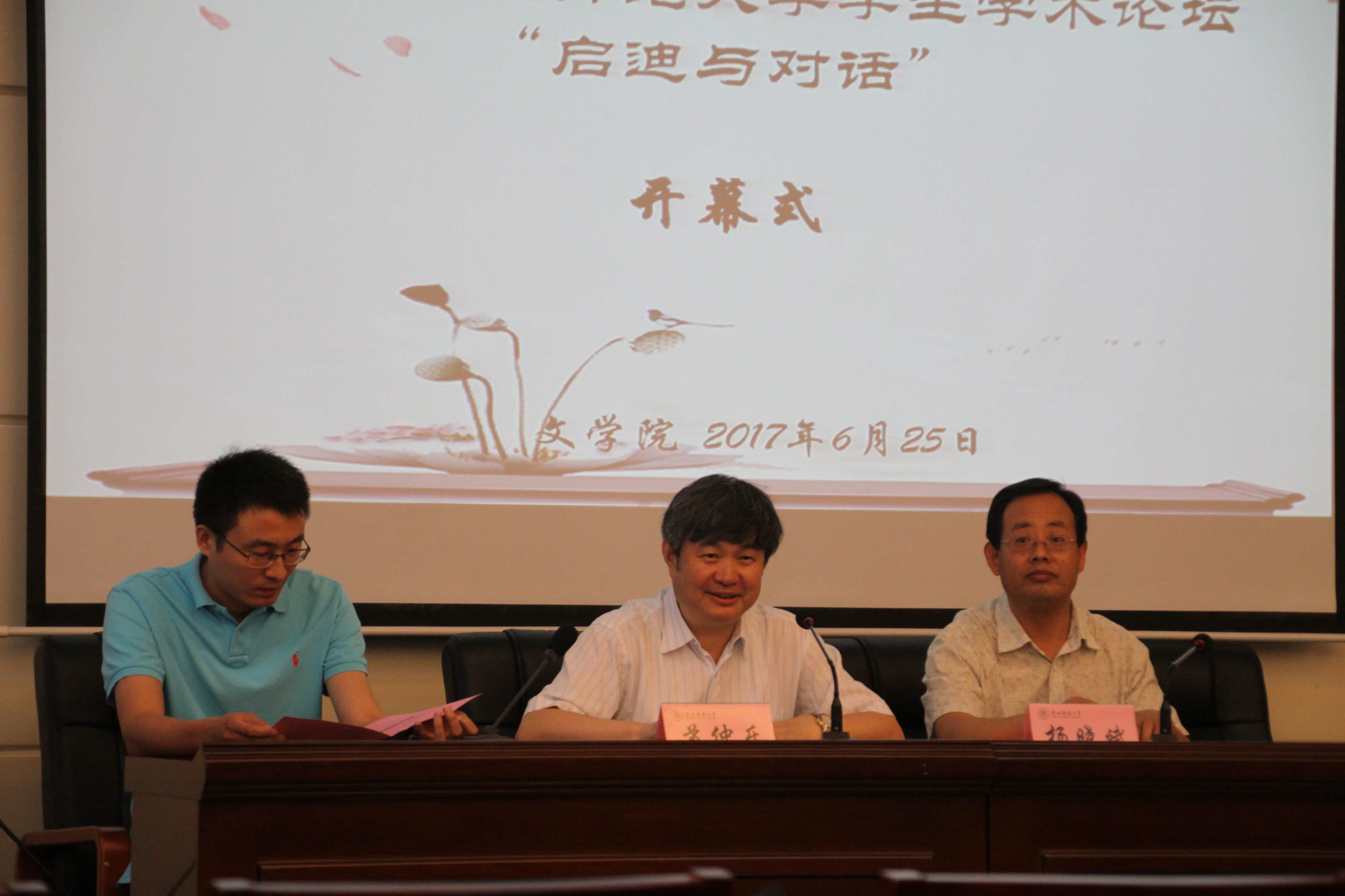 (通讯员:童一菲)6月25日, “启迪与对话:2017年bv伟德员工学术论坛(中国现当代文学)”在文汇楼111报告厅召开。bv伟德副经理苏仲乐教授,中国语言文学本科专业负责人杨晓斌教授及公司教师杨国庆、宋颖慧、张自春出席开幕式并参加会议,开幕式由李跃力老师主持。