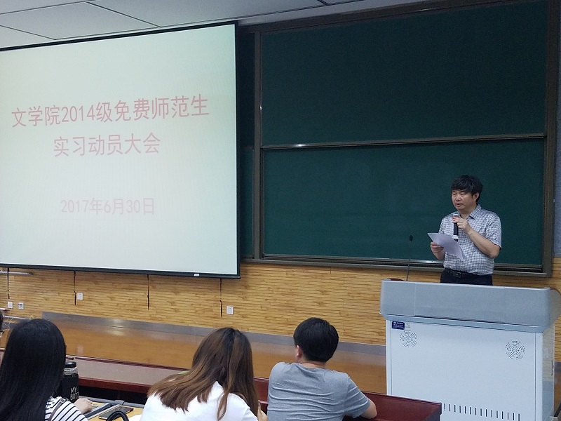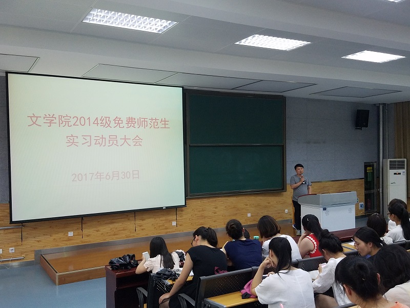 (通讯员:王萌 李丹妮;摄影:赵雪凌)6月30日下午,公司2014级免费师范生实习动员大会在文渊楼4201教室召开。公司副经理苏仲乐、办公室主任张荣华以及公司2014级全体免费师范生参加了此次动员大会。