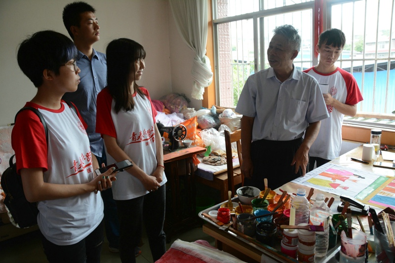 稍后,实践团成员拜访了景谷县傣文化协会会长周继元。周老先生向我们展示了傣族传统绘画特色。傣族绘画多依托于佛寺所用的经幡,绘画内容多为佛教及傣族民间各种故事。这些故事多歌颂真善美,劝导人向善奉献,在当地发挥着重要的教化作用。周老先生还向大家介绍了傣文化协会目前所做的一些傣族传统文化保护工作以及工作中所遇到的困难。实践团成员认真倾听并做了记录。最后,周老先生向实践团成员赠送了由他主编的《傣族民间故事》。
