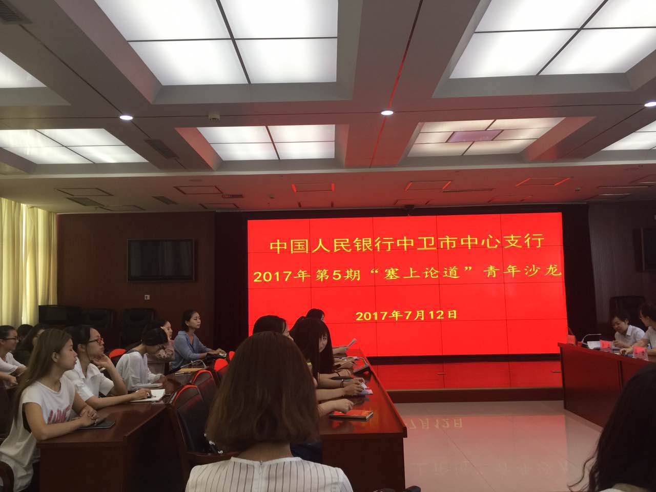 7月12日上午,中卫市中心支行举办了“塞上论道”青年沙龙活动,秘书学系师生和中国人民银行中卫市中心支行全体40岁以下职员参与了本次活动。银行青年代表以“存款保险制度的前世今生”为主题,围绕存款保险制度的理念、进展、最新发展趋势及其对商业银行的影响展开学习交流。秘书学同学就“古代公文文体的演变”,从公文文体演变方式、公文文体与儒家思想的关系、古代重要的公文制度——贴黄、古代公文语言的特征、公文的保密方法五个方面与对方进行分享学习。此次的沙龙活动使双方深入进行思想上的交流碰撞,展示出秘书学系同学们的专业风采。