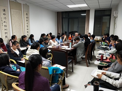 活动开始,段老师首先简单介绍了自己的研究方向,即文艺学古代文论方向。对于古代文论的学习和研究,段老师提出了自己的看法。他认为当代研究者不能简单地把古代文论看作是无用的、已经过时的内容,而是应该秉持一种常读常新的态度;对理论著作的研读不应该受到现有理论的局限,要从多角度多方面发掘文本新意。其次,段老师在教学中发现,同学们对古代文论的学习兴趣不足。针对这一现象,他谈到文论不仅仅是一门文学之课,也是一门人生之课,是教我们博雅地学习、生活的课程。所以要正确认识文论学习的必要性。再次,当谈到西方文学理论与中国古典文论的关系时,段老师不赞同拿西方文学理论体系机械“规训”中国古典文论的做法,他认为这样的做法会使中国文论失去本色。