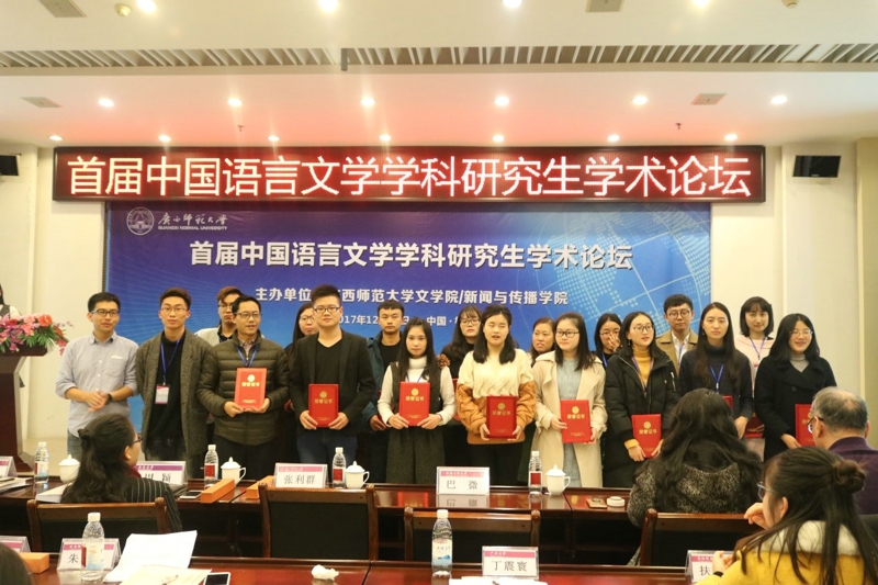 2017年12月23日,首届中国语言文学学科研究生学术论坛在广西桂林隆重开幕。此次论坛由广西师范大学bv伟德/新闻与传播公司主办,以“中国语言文学与文化研究”为主题,旨在加强各高校优秀研究生间的学术交流。应广西师范大学bv伟德/新闻与传播公司邀请,公司副经理赵学清教授率队参加此次论坛。通过征稿,入选的研究生有余小翠、黄文浩、史佳新、庄佳、陈静、贾雁皓、陈静、任杰、林贤等九名员工。