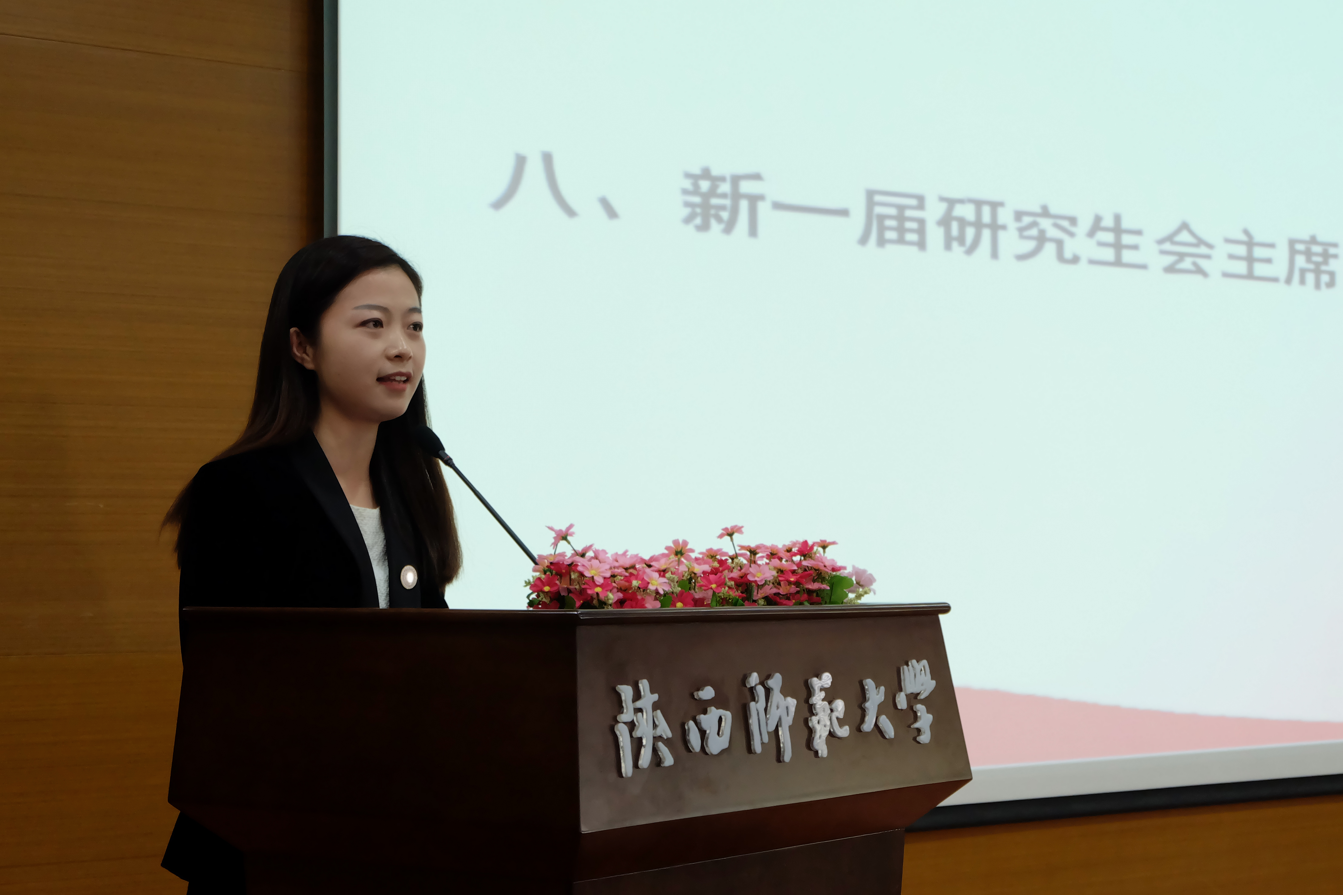 接着,2017-2018学年员工会副主席张苗怡作上一年度工作汇报。张苗怡同学回顾了员工会一年来的各项工作,分享了自己的工作经验,并表达了对新一届员工会工作的美好祝愿。2017-2018学年研究生兼职团委副书记刘浩宇发言。刘浩宇同学总结了研究生会过去一年的工作成果,并希望新一届研会成员能不忘初心,牢记使命,为公司中国语言文学世界一流团队建设贡献力量。