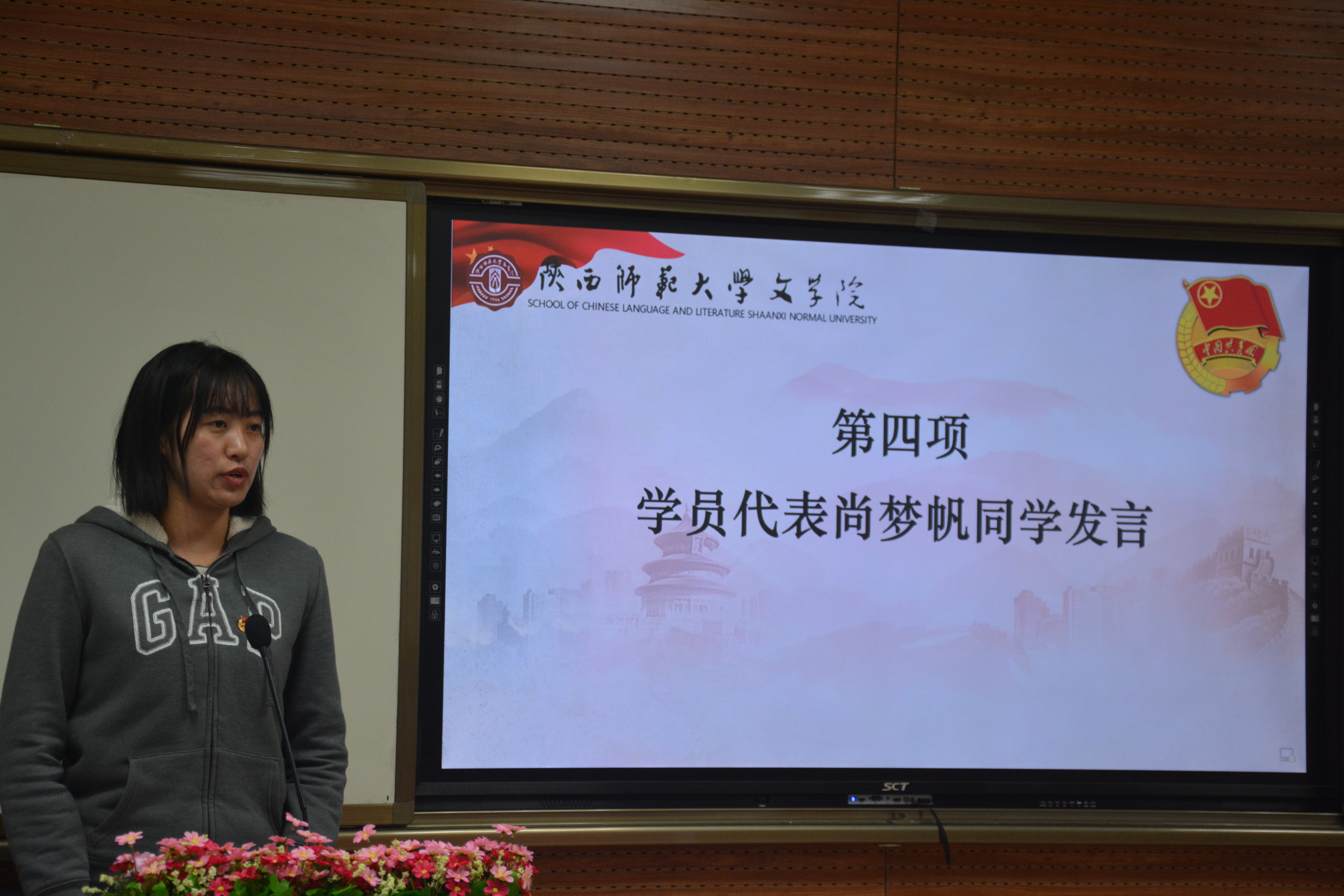 仪式在全体师生整齐嘹亮的团歌声中拉开帷幕。辛田老师宣读公司2017—2018学年共青团创建评优表彰决定。与会老师为2016级汉语国际教育团支部等5个五四红旗优秀团支部、张鹏等5名优秀团支书、周倩等5名优秀团干部、刘淼等5名优秀团员颁奖。