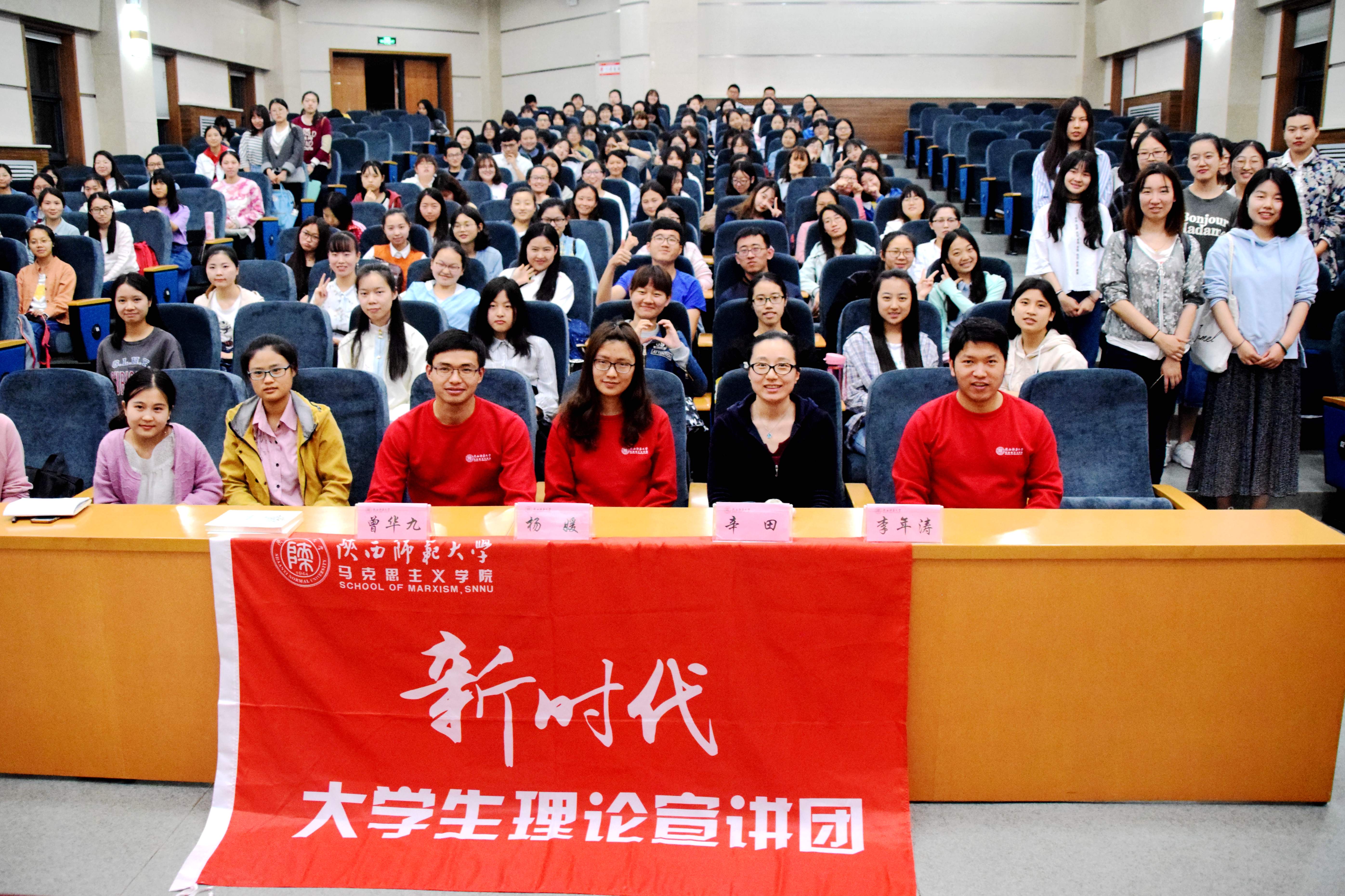 宣讲团成员、马克思主义公司2016级政治学理论专业硕士研究生李年涛同学以“我的军旅初心”为主题,结合自己的两年军旅经历,生动讲述了军队铁打的纪律使他拥有了钢铁般的意志力和抗压能力,增强了心系国家的责任感和使命感。他鼓励在座的各位积极参军,树立崇高的信念,为祖国新时代的建设献一份力。2016级思想政治教育专业本科生杨媛同学则以“弘扬传统文化,坚定文化自信”为主题,以三月初三中国华服日为切入点,展示了当代潮流元素与中国传统文化相结合的服饰作品,希望同学们争做弘扬优秀传统文化的新时代青年,树立文化自信,为中华文化走向世界贡献力量。2015级思想政治教育专业本科生曾华九同学以“乡村发展战略——那合不拢嘴的笑”为主题,讲述了发生在田间小路上的创业故事,因地制宜,种植脐橙,实现了成百上千农民的“脱贫梦”,他号召同学们肩负起新时代下的新任务、新责任,将个人理想与社会理想结合起来。