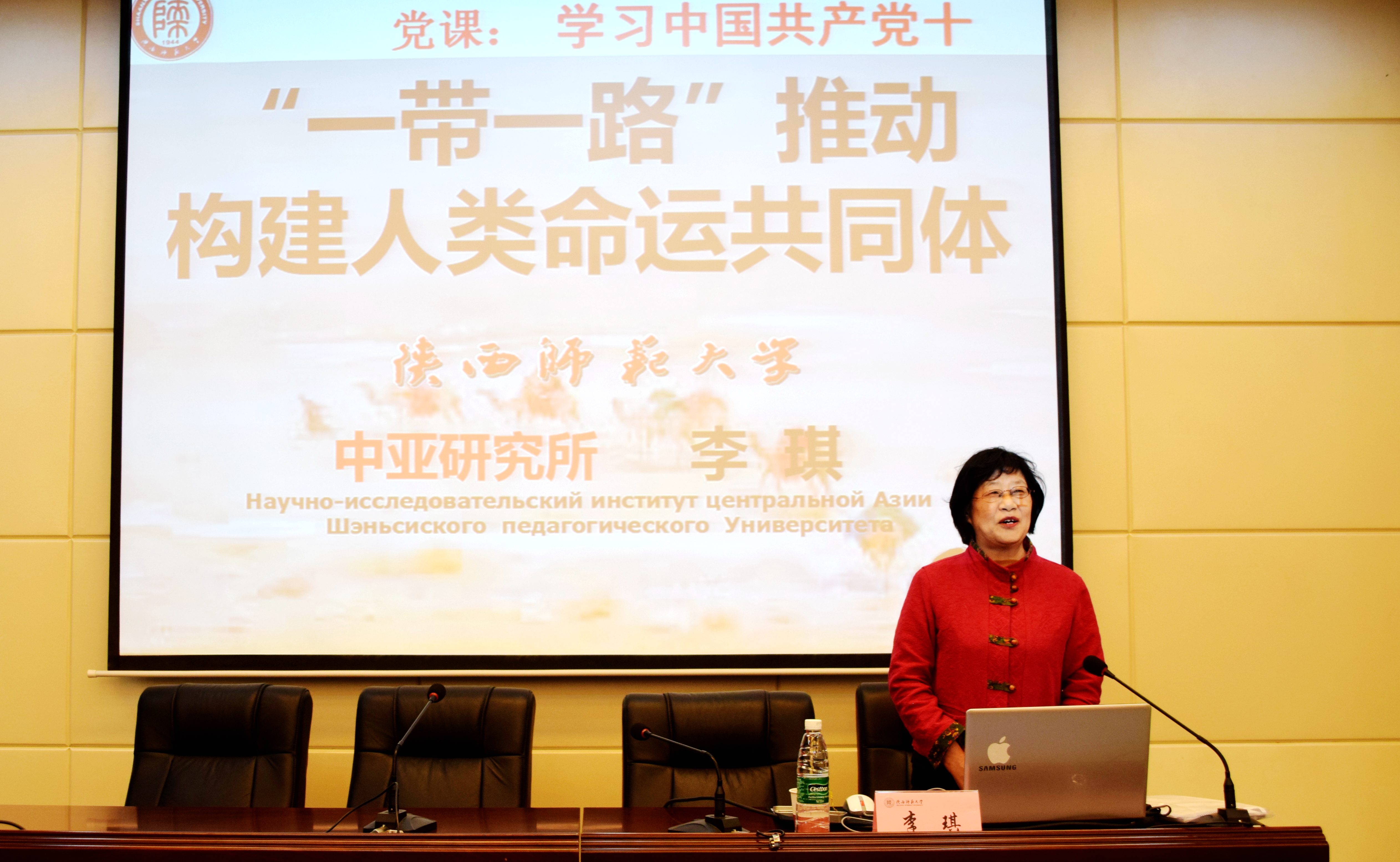 开班仪式结束后,现任陕西省哲学社会科学重点研究基地“‘一带一路’建设与中亚研究协同创新中心”首席专家和主任、bv伟德中国官方网站中亚研究所所长、博士生导师李琪教授以“一带一路推动构建人类命运共同体”为题,为学员们讲授本次党课培训班第一课。她结合十九大报告,从宏观层面详细介绍了“一带一路”的概念、内涵、影响以及一带一路的定位和谋略思路,我国地缘环境和多国在中亚地区的博弈情况,以及构建人类命运共同体的宗旨、原则和历史使命。课上,李教授旁征博引,与学员亲切互动,课堂氛围融洽和谐。