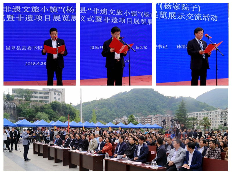 (通讯员 党玮)由公司牵头策划的公司结对帮扶岚皋县重点项目——“非遗文旅小镇”(杨家院子)建设启动仪式暨非遗项目展览展示交流活动4月28日上午在安康市岚皋县广场隆重举行。陕西省商务厅厅长赵润民,公司党委书记程光旭,陕西省文化厅副厅长顾劲松,安康市人大常委会主任陈勇,岚皋县委书记周康成、县长杨义龙等出席仪式;公司党委宣传部部长、公司办公室主任马晓云,科技处处长、扶贫办公室主任吴晓军,科技处副处长、扶贫办副主任张卫兵,音乐公司副经理郭元,公司党委书记孙清潮、写作教研室主任张宗涛等参加了活动。
