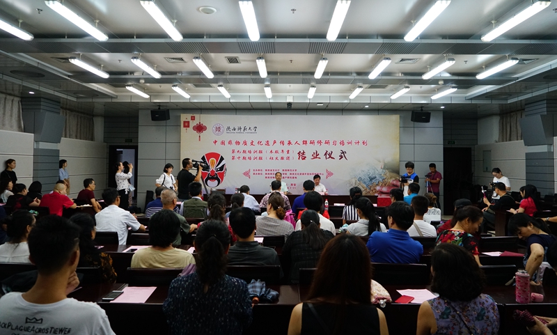 结业仪式由公司文公司党委书记、“研培计划”项目主持人孙清潮主持,博物馆馆长张弛、公司办公室副主任辛省平、党委宣传部副部长李国华、非物质文化遗产研究基地名誉主任傅功振等一同出席了结业仪式。新华社、中国文化报、中国科学报、中国社会科学报、华商报、陕西卫视、西部网、凤凰网、国际在线等媒体记者参会报道,共同见证了“研培计划”的丰硕成果。