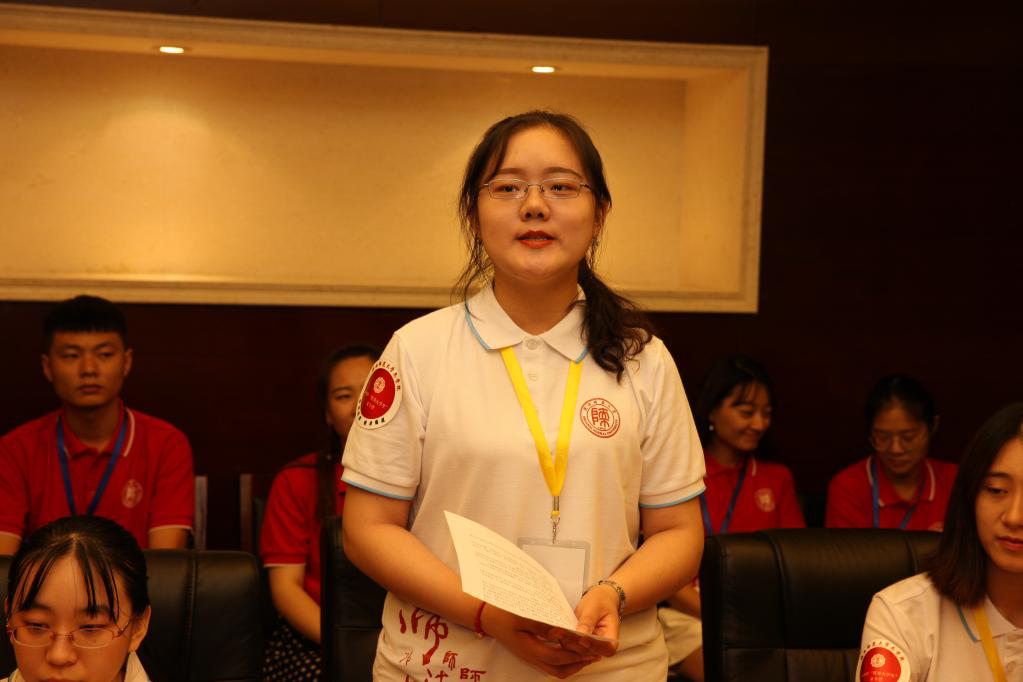 夏令营的营员依次作自我介绍,并分享了各自在本科生阶段的学习和生活情况。其中,来自山西大学的陈飞同学发言:“选择陕师大是看中其浓郁的人文情怀,在当今这个浮躁的社会里,希望可以在陕师大找到一方净土专心治学。”西南大学的曾晨同学作为学员代表作总结发言,对接下来在陕师大bv伟德的夏令营生活表达出美好的展望与期待。