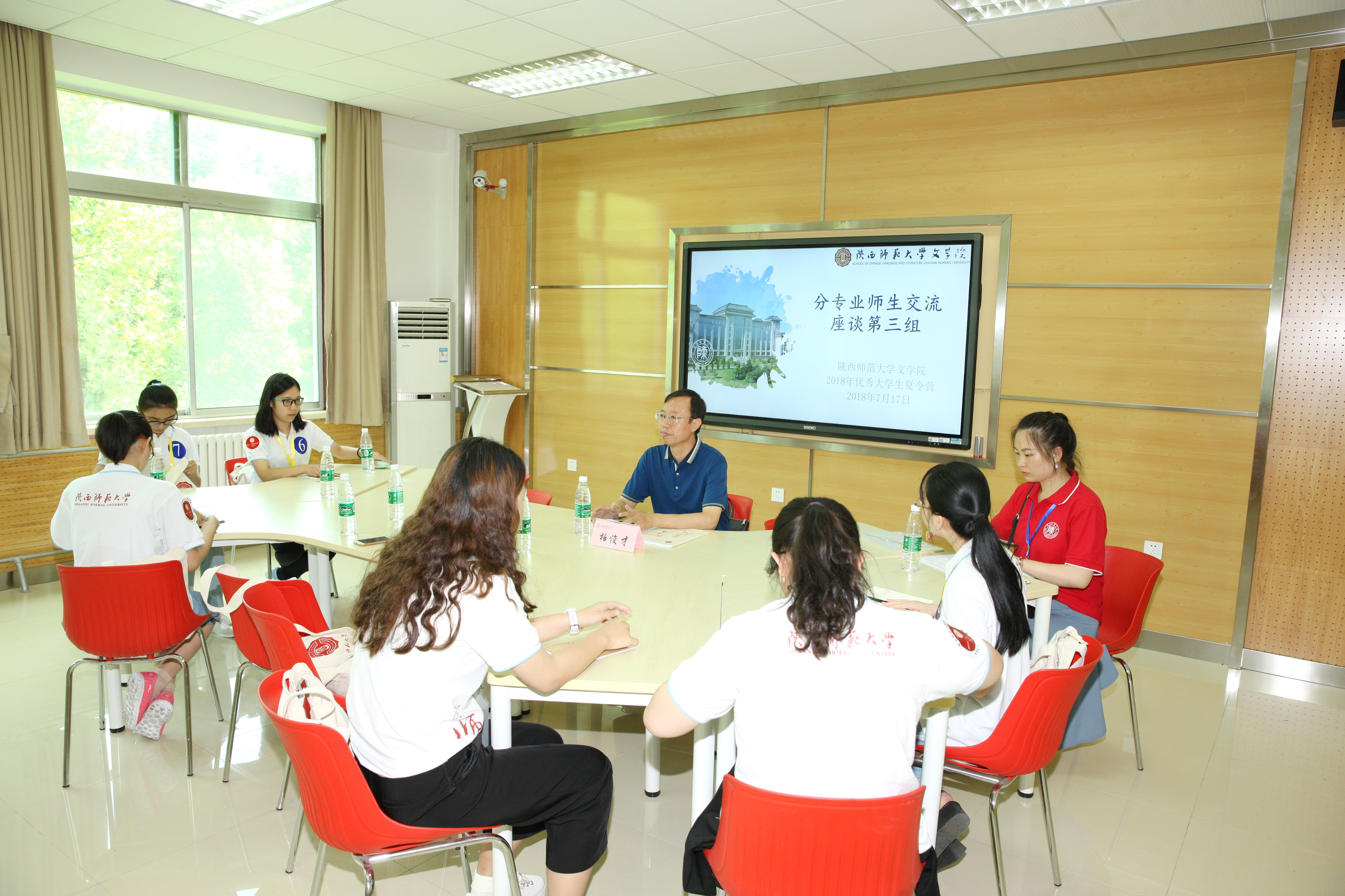 讲座结束后,夏令营营员根据自己的兴趣和拟报考研究生专业的不同分为三组,分别与中国现当代文学专业的李跃力老师、语言学专业的黑维强老师、中国古代文学专业的柏俊才老师进行了交流。三位老师对营员们现阶段取得的成绩表示了肯定,解答了同学们在专业学习方面的问题和疑惑。