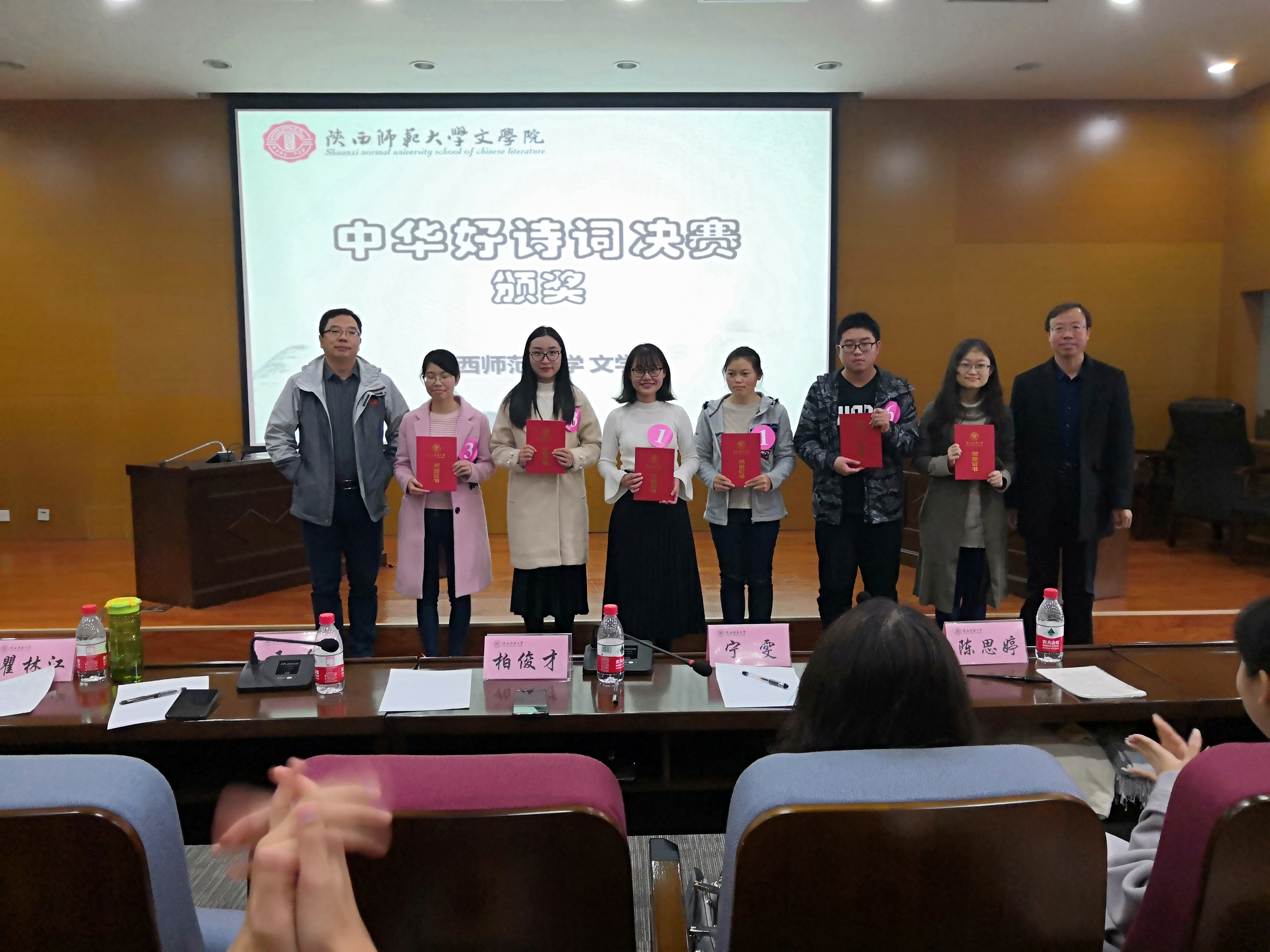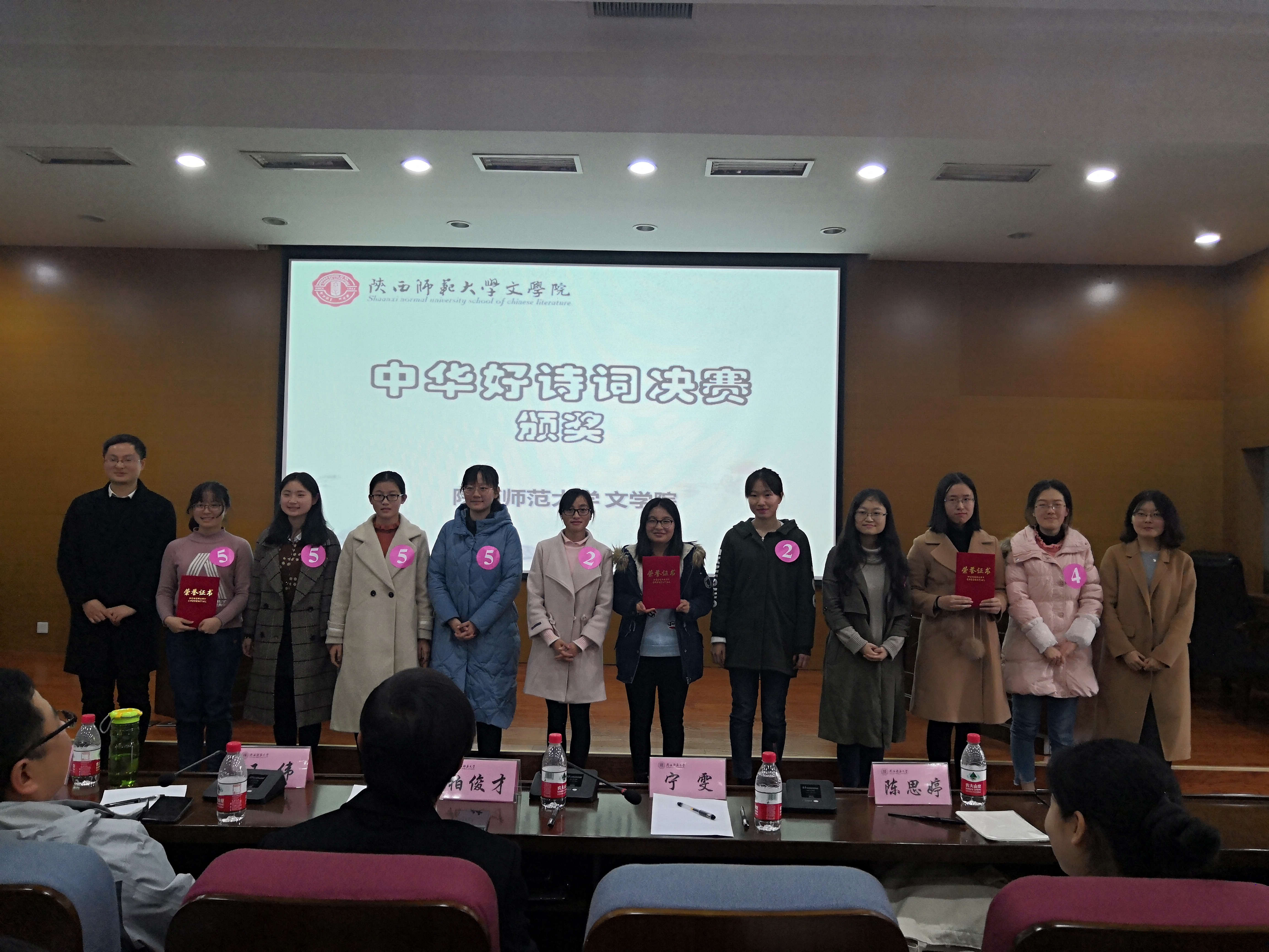 11月17日早9:00,“中华好诗词”决赛在长安校区文汇楼C段211举行。本次决赛特邀bv伟德柏俊才教授、王伟教授、瞿林江老师、宁雯老师、在央视中华好诗词中表现优异的陈思婷同学担任评委,6支晋级队伍展开了最后的角逐。