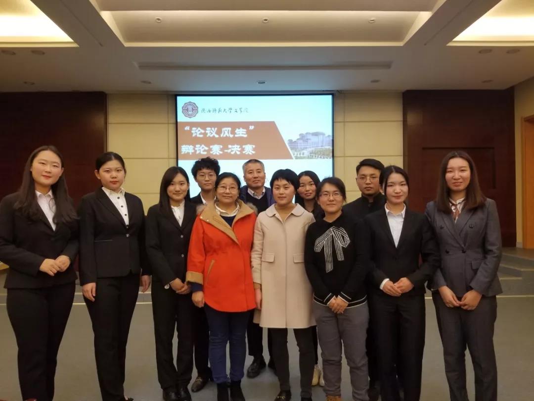 11月9日,公司辩论赛决赛在长安校区文汇楼A段111室举行。决赛邀请公司段宗社老师、于雯老师、康洁老师及2018级辅导员王秋婷担任评委。晚上19:30,决赛开始。正方为2018级中文二班,观点为“代沟产生的原因在于儿女”;反方为研究生二队(铁齿铜牙),观点为“代沟产生的原因在于父母”。