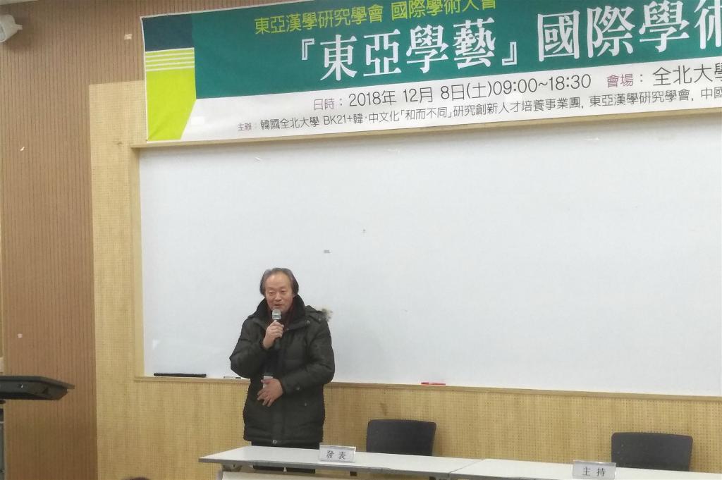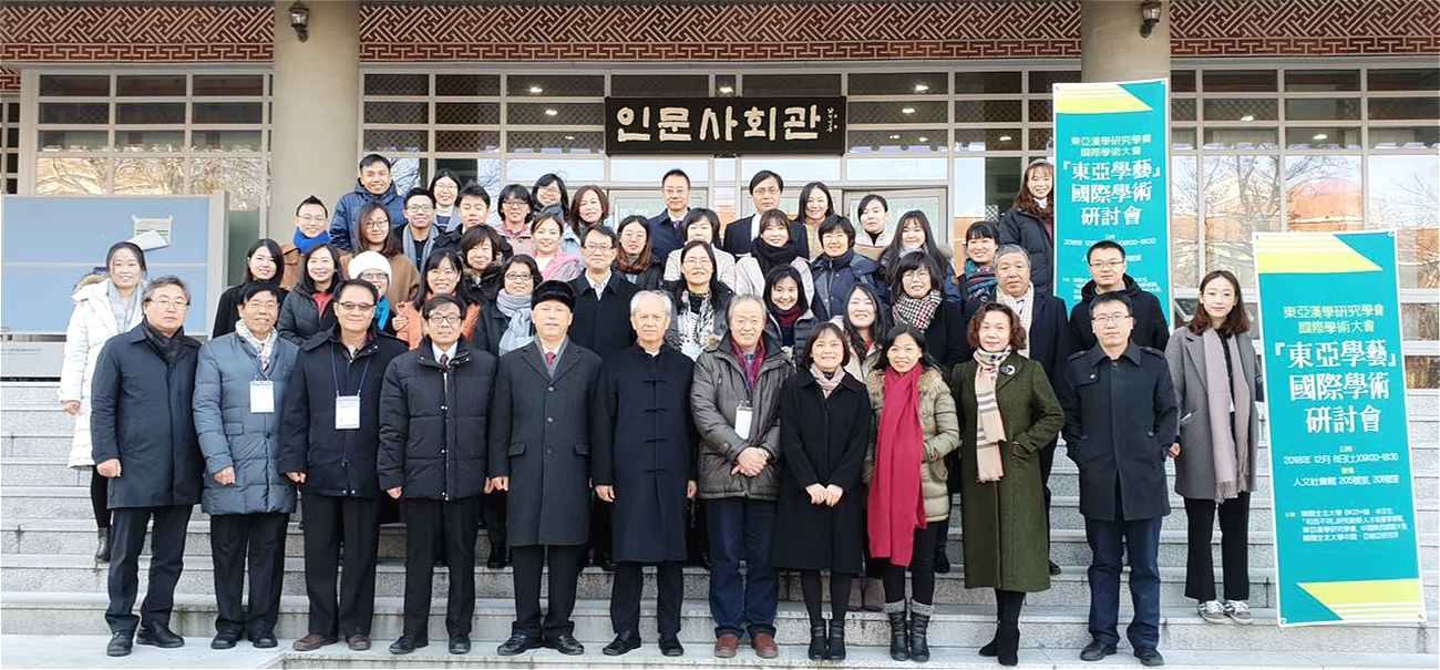 此次学术研讨会系东亚汉学研究学会2018年度特别会议,于12月8日在韩国全北大学举行,来自全北大学、长崎大学、bv伟德中国官方网站、西北大学、内蒙古师范大学、陕西理工大学、台湾师范大学、台湾政治大学、淡江大学、真理大学等十多所国内外知名院校的四十多名学者参与了此次会议。大会开幕式由长崎大学连清吉教授主持,全北大学金炳基教授、东亚汉学研究学会会长杨晓安教授、陕西师大李继凯教授分别在开幕式上致辞。在会议中,李继凯作了题为《中国高僧与书法文化窥探》的发言,郑贞作了题为《文学世界中的香港——以施叔青、西西、黄碧云为中心》的发言,李永平作了题为《“大闹”:“热闹”的内在结构与文化编码》的发言,王奎作了题为《陕甘宁文人书画艺术》的发言。他们的发言获得了广泛好评。此次会上的议题涉及中国古代文学、中国现当代文学、文艺学、文字学、文学人类学、民俗学、书法等多个学科,促成了汉学研究的多领域、多学科的交流与对话。会场休息期间,韩国著名书法家、全北大学金炳基教授邀请与会人员参观了全北大学书法教研室,公司李继凯教授与李永平教授挥毫留念,赢得了在场学者们的喝彩。