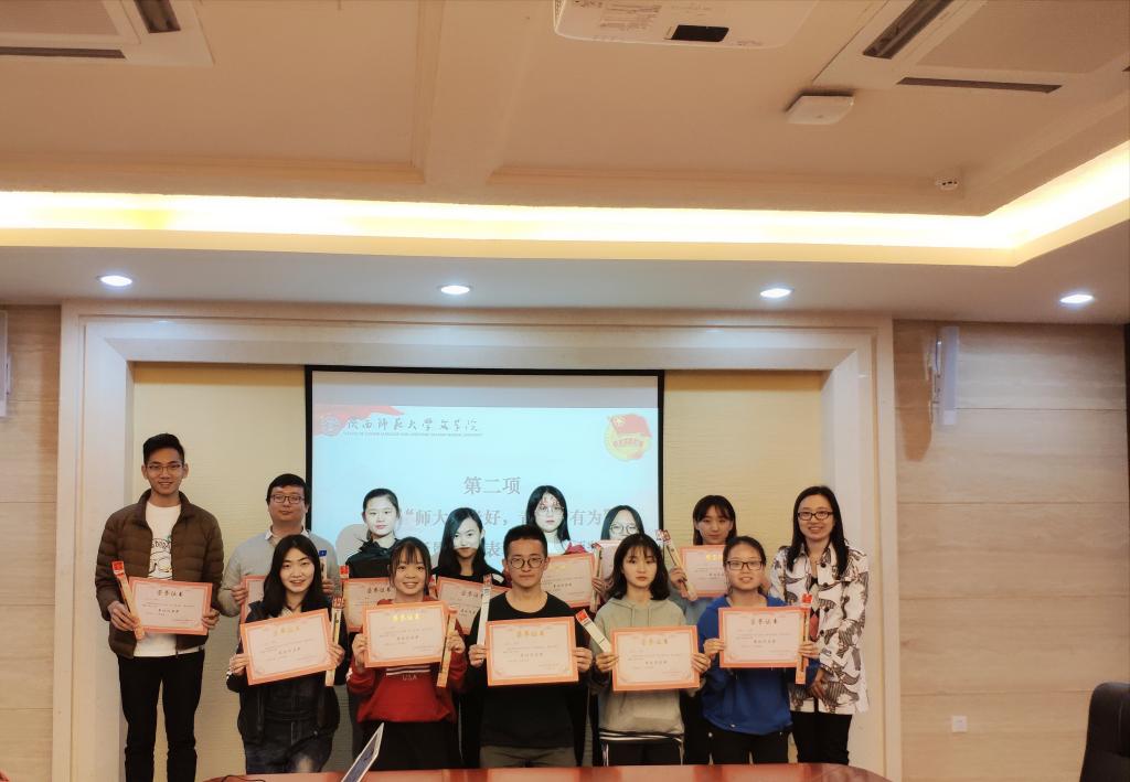 会议在雄壮的共青团团歌中开始。会议第一项,公司员工会副主席杨晓瑜宣读了《关于“师大春光好,青年须有为”主题摄影大赛的表彰决定》。接着,公司团委书记辛田为获“最具人气奖”和“最佳作品奖”的18名同学颁发了奖状和奖品,并向获奖同学表示祝贺,希望同学们在今后的学习和生活中珍惜时光,奋力向上,为校园生活增添新的活力。