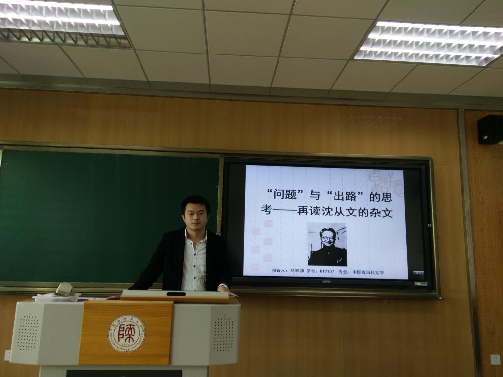 2019年4月1日,第70场博士学术报告以《“问题”与“出路”的思考:再读沈从文的杂文》为题,由中国现当代文学专业博士研究生马率帅主讲。马率帅首先介绍了自己的相关参考书目,其次他论述了论文的主体框架与写作思考,他将论文分为:问题的提出与意义、沈从文杂文形式的问题类型、“沈从文式”的出路思考、尝试与困境的交织、文学之于沈从文及知识分子的用与无用、结语等六大块,马率帅围绕主题详细讲述了各部分的内容与想法,甚是详尽。此次报告内容新颖,详细充分,拓展了同学们的知识,让人倍感轻松。