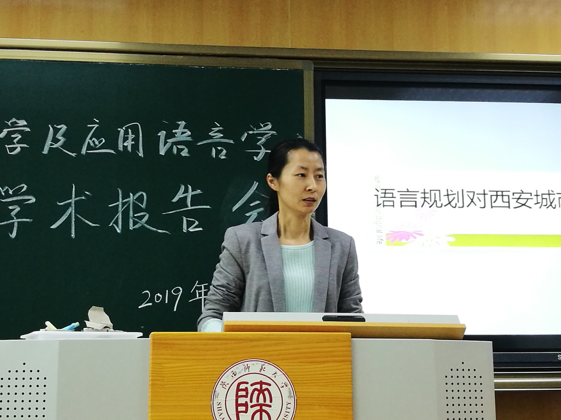 第87场博士学术报告以《语言规划对西安城市发展的意义》为题,由语言学及应用语言学专业博士研究生王勤主讲。在报告中,王勤首先讲述了研究的缘起,并分析了西安城市发展的背景。接着,探析了语言规划对城市发展的重要性。随后王勤列举了近几年西安的语言环境和成就。最后,王勤详细地讲述了自己对城市语言规划的认识,以及对公共语言服务的认识。王勤认为,国际化语言环境不等于外语环境,不等于英语环境;公共语言服务不等于翻译服务,不等于为外国人提供语言服务。