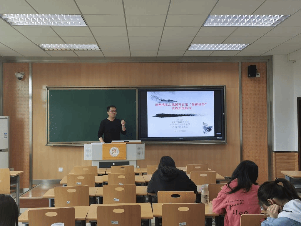 2019年5月8日,第103场博士学术报告以《印苑鸿宝之战国齐官玺“易都邑埾”及相关玺新考》为题,由语言学及应用语言学专业博士研究生李文亮主讲。李文亮讲道,“易都邑埾”玺乃印苑鸿宝,百余年来关于其印文释读素有分歧,迄今未安。李文亮从史料《战国策》出发,在前贤旧释的基础上,提出了新的见解。