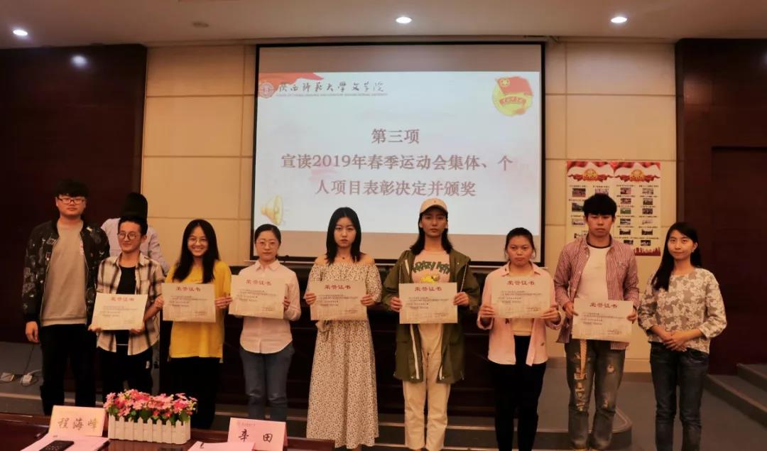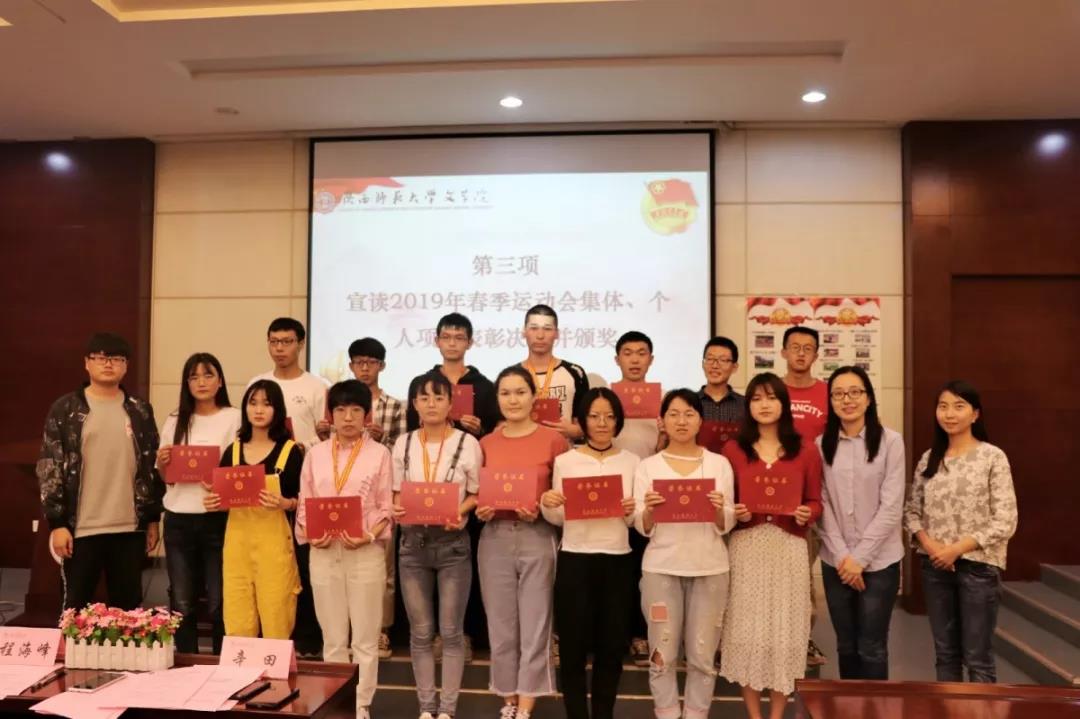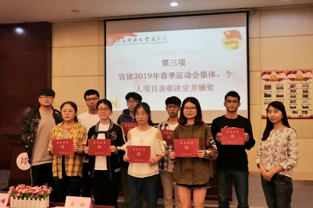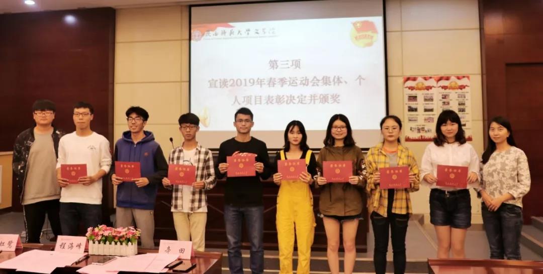 5月17日下午13:00,bv伟德2019年共青团创建评优暨校运会表彰大会在长安校区文汇楼A段111报告厅召开。bv伟德团委书记辛田,辅导员范虹鹭、程海峰及获奖同学代表参加会议,会议由辛田老师主持。