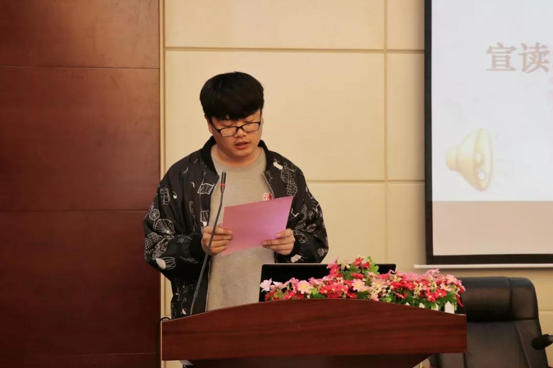 范虹鹭老师宣读bv伟德2019年共青团创建评优表彰决定。