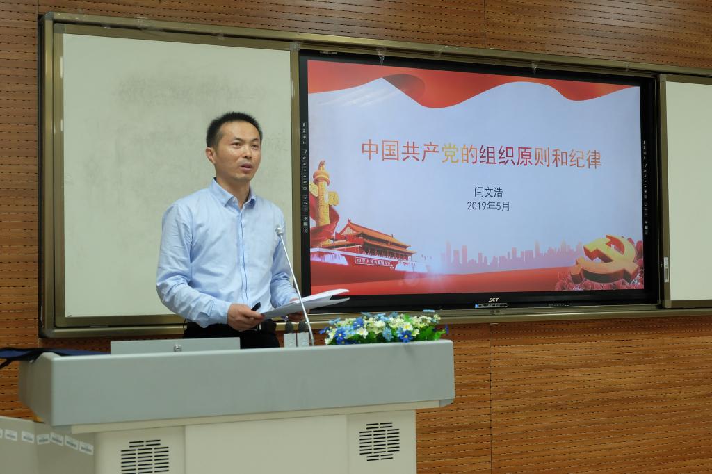 5月23日,马克思主义公司党委书记闫文浩老师作“中国共产党的组织和原则”报告,解读了《中国共产党的廉洁自律原则》、《中国共产党纪律处分条例》等文件,深化了学员们对习近平总书记在党中央和全党核心地位的认识。