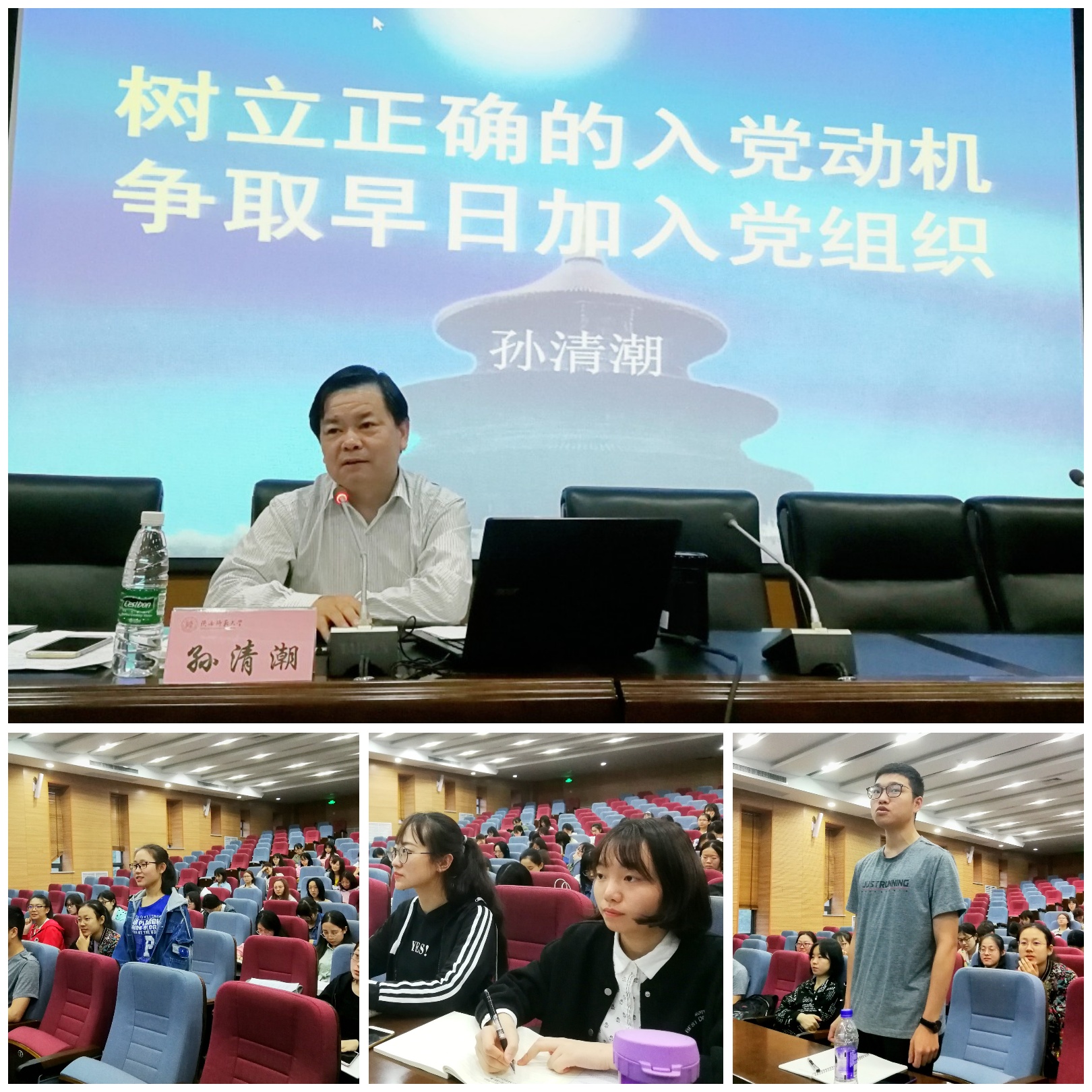 5月29日,文公司党委书记孙清潮老师作“树立正确入党动机,争取早日加入党组织”报告,结合中外政治案例为同学们明确了端正入党动机的重要性和必要性,介绍了成为一名党员的标准和基本程序。