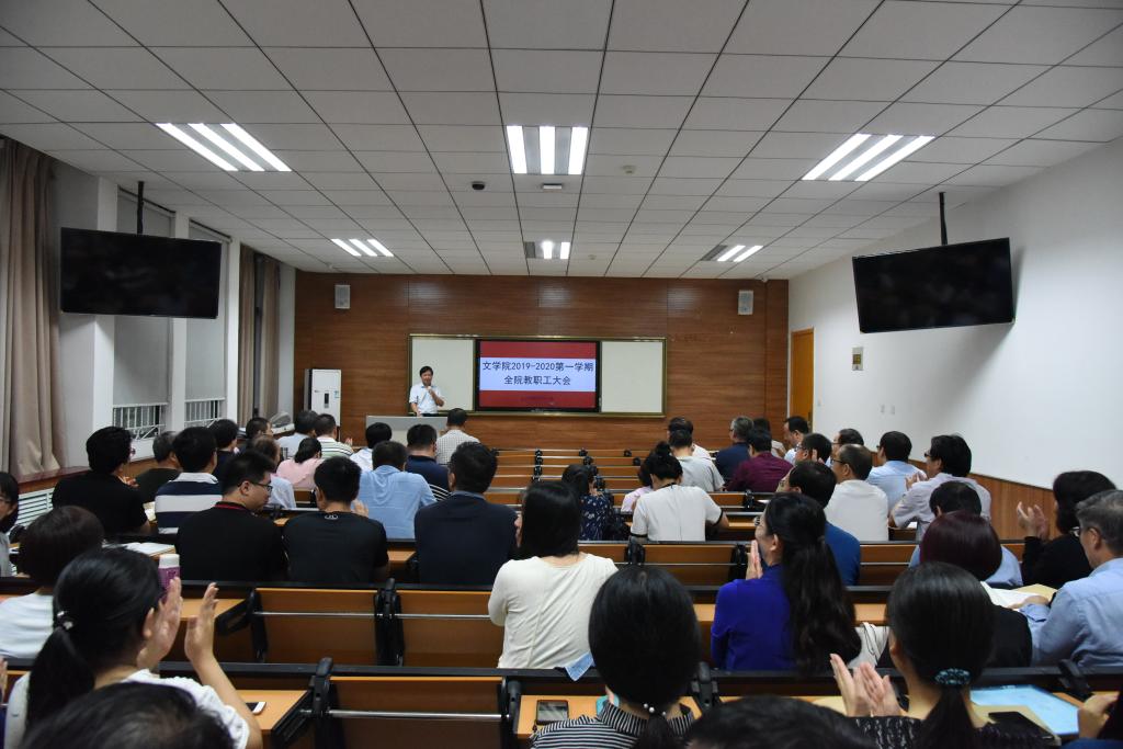 孙清潮首先传达了公司新学期工作部署会上的相关精神,重点解读了公司党委书记程光旭讲话中的“五个要求”和董事长游旭群讲话中的"一条主线""五个方面"“十个聚力”。随后,他对上学期bv伟德取得成绩进行了总结,对暑期和开学以来的具体工作进行了回顾,并对本学期公司工作作了详细安排。他指出,今年是落实全国教育大会精神和公司第十一次党代会精神的开局之年,是推进“双一流”建设的关键之年,更是公司内涵发展、奋力追赶的紧要之年。希望全院教职工,提高政治站位,坚持立德树人,扎实开展“不忘初心、牢记使命”主题教育,努力提高人才培养质量,认真做好第五轮学科评估准备工作,为实现中国语言文学世界一流团队建设目标而努力奋斗。