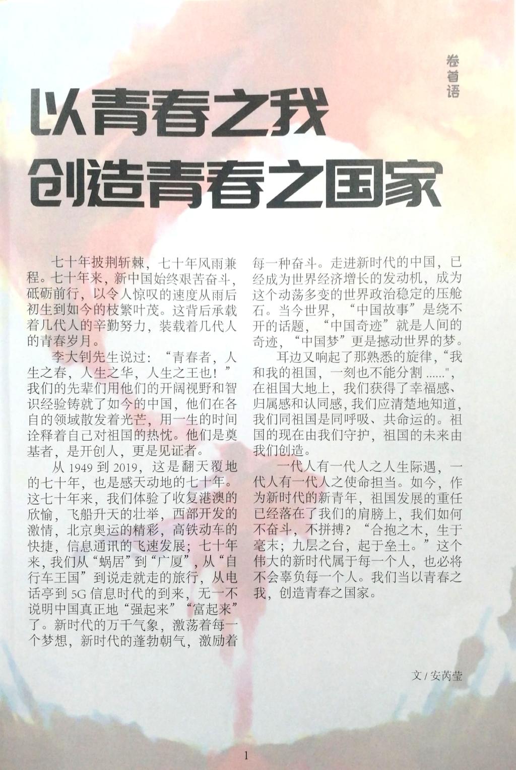 2019年9月16-20日,公司长风文学社结合各班团日活动,收集赤子心声,汇聚爱国热浪,用一句句美好的祝福,表达对新中国取得伟大飞跃的骄傲和继往开来、勇攀高峰的的期许,用熟悉的方式、真挚的情感表达文苑学子的拳拳之心。