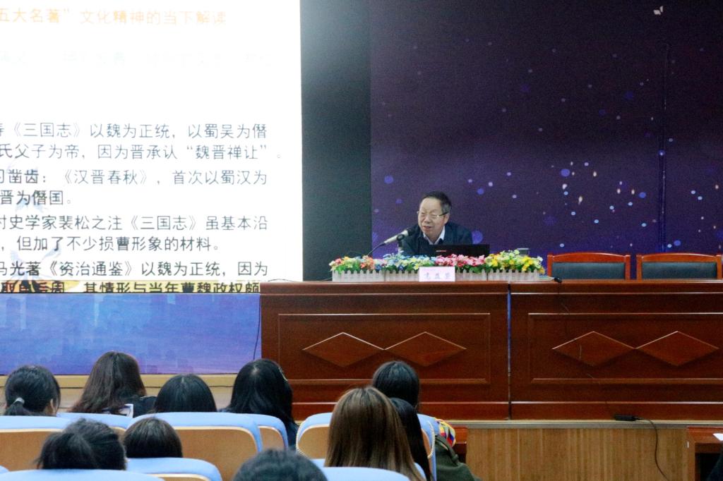 高益荣老师在讲座中谈到,小说是一个民族的历史,对于我们中华民族精神和民族性格的表达解读有着重大的意义,同时也表达了人民对于美好品德、美好情感的赞颂,以及对不正确不道德的思想行为的批判。高老师认为,“五大名著”在中国文学史和文化史上具有重要的地位,“五大名著”所蕴含的文化精神在当下也具有很强的现实意义。