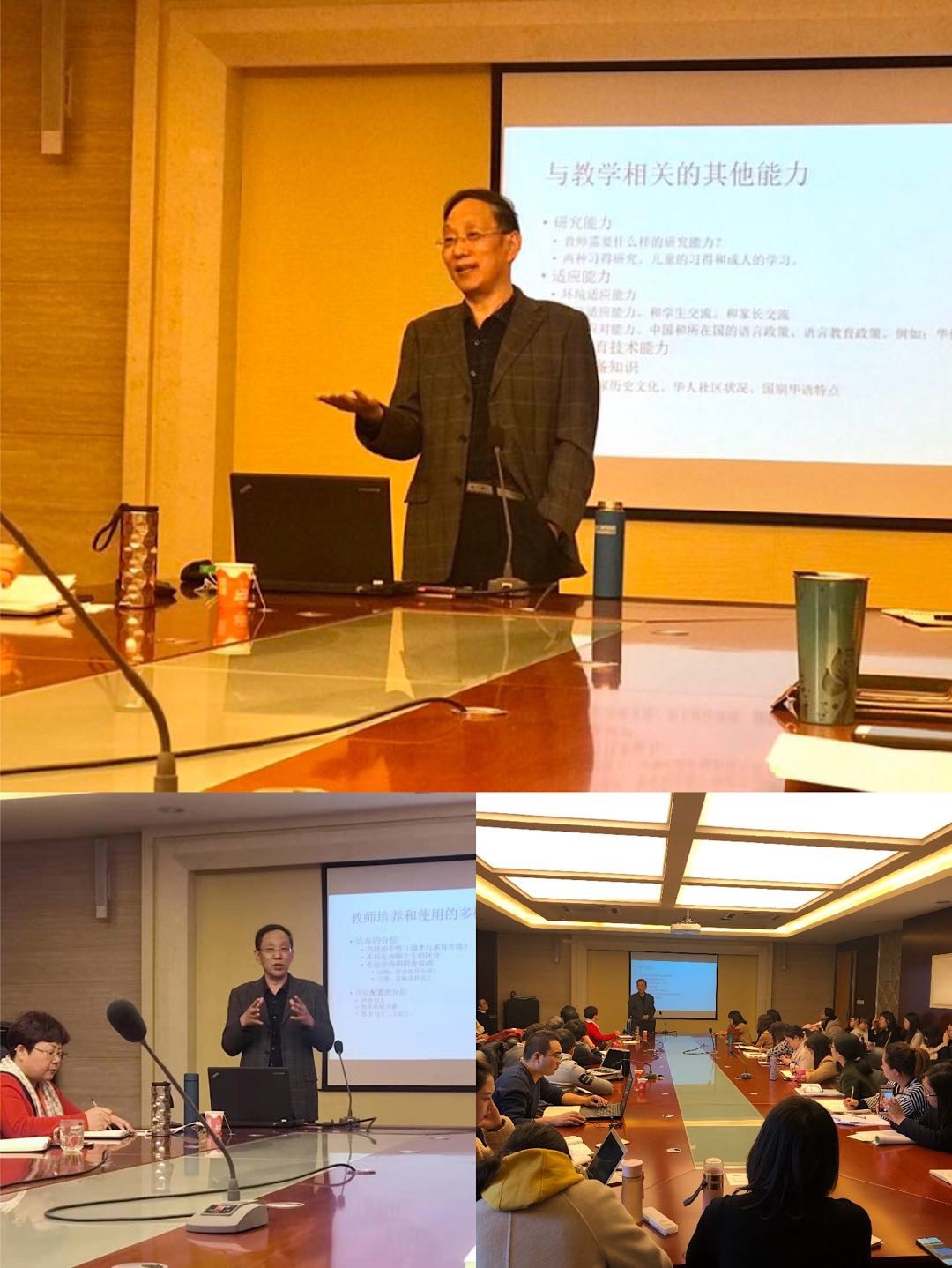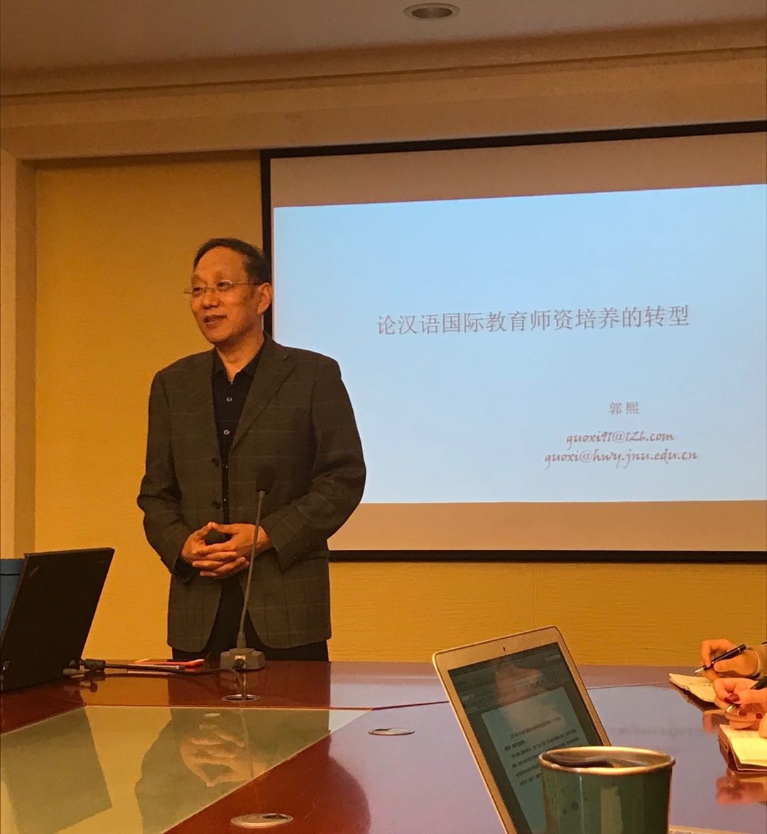(通讯员:刘林燕 摄影:郑东晓)暨南大学海外华语研究中心主任、博士生导师郭熙教授莅临公司访问,于11月19日下午3点在长安校区文汇楼A区409室做了题为“汉语国际教育团队培养的转型”的学术讲座。报告由杜敏教授主持,赵学清教授点评。