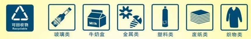 主要包括:报纸、易拉罐、书本、杂志、纸箱纸板、宣传单页、牛奶盒、饮料瓶、奶瓶、洗发水瓶、食用油桶、塑料衣架、泡沫塑料、塑料玩具、橡胶轮胎、菜刀、剪刀、锅、铁钉、酒瓶、玻璃杯、床单、枕头、棉被、毛绒玩具、包、电路板、充电宝、插座、积木、磁力贴、拉杆箱。