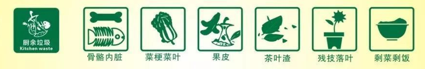 主要包括:米饭、面、面包、巧克力、饼干、鸡鸭猪牛羊肉、动物内脏、鱼刺鱼骨头、鸡蛋壳、烂菜叶、调味品、剩饭剩菜、虾壳、香蕉皮、橙皮、菠萝皮、苹果皮、西瓜皮、番茄酱、茶叶渣、中药渣、花生壳、瓜子壳、宠物饲料、变质水果、盆栽树叶、过期食用油、火锅底料、奶茶、膨化食品、咖啡渣。