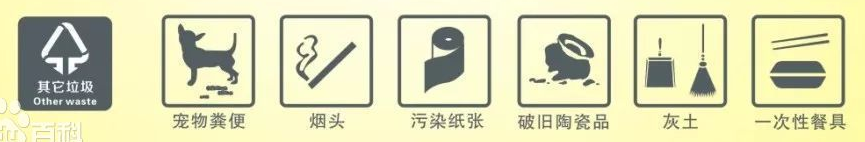 主要包括:厕纸、餐巾纸、湿纸巾、尿不湿、卫生巾、保鲜膜、塑料袋、一次性餐具、纸杯、烟蒂、尘土、陶瓷制品、海绵、一次性干电池(5号7号电池)、破袜子、安全帽、奶茶杯、毛发、橡皮泥、竹筷子、牙签、打火机、废旧鞋子、一次性口罩、干燥剂、大棒骨、榴莲壳、椰子壳、口香糖、宠物粪便、过期化妆品、粽子叶、玉米衣。