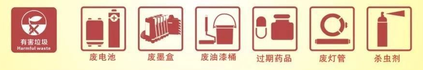 主要包括:手机电池、铅蓄电池、纽扣电池、日光灯管、节能灯管、灯泡、过期药品、杀虫剂、消毒剂、老鼠药、蚊香液、水银体温计、废胶片相纸、硒鼓、墨盒、染发剂壳、指甲油、油漆桶、废旧笔芯、洗甲水、X光片、口服液、膏药。