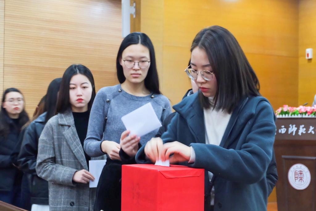 会上,bv伟德本科生兼职团委副书记李云洁宣读《共青团bv伟德中国官方网站第十四次代表大会选举办法》;表决通过张文贺为大会监票人,王娟、曾雯璐、郭新月、杨雨帆、李雅婧、王亚丽、张心宇等7位团员为计票人;bv伟德研究生兼职团委副书记马佩仪宣读26名代表候选人名单。随后,大会采用无记名投票、差额选举的方式进行了选举,与会团员代表认真填写选票,逐一在票箱投上了自己庄严的选票。投票结束后,监票人、计票人现场清点选票。