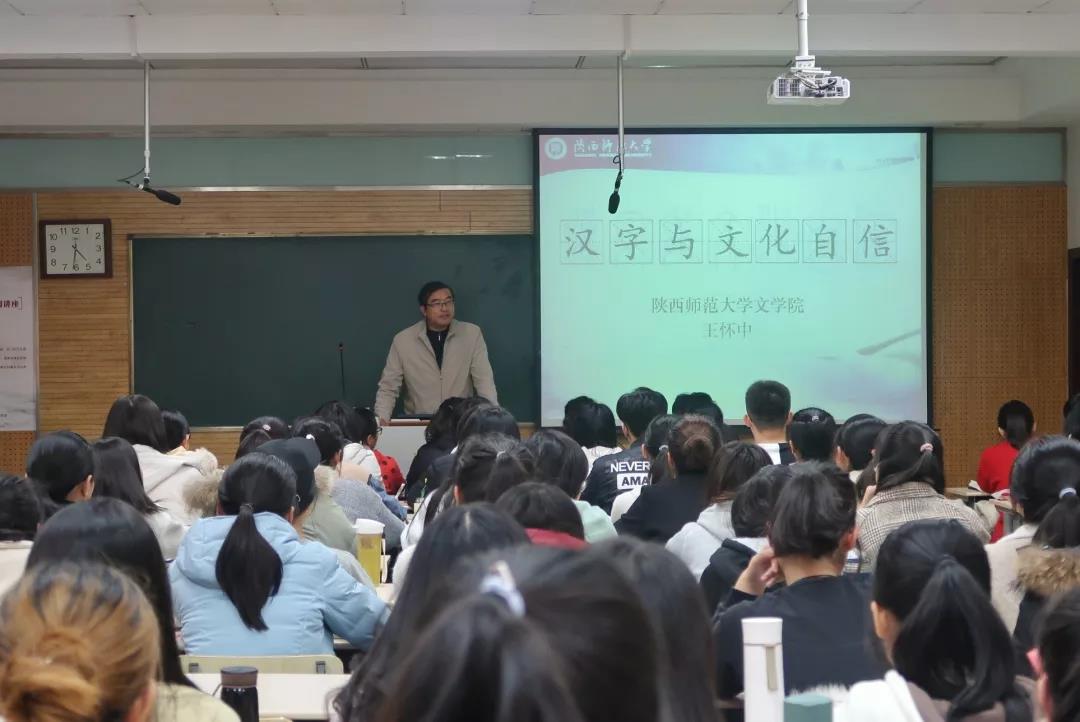 (通讯员:文苑)11月27日晚,文学院“文学与思政”系列讲座第十讲在公司雁塔校区5106教室举办。bv伟德副教授,硕士研究生导师王怀中以“汉字与文化自信”为题为同学们进行讲授。